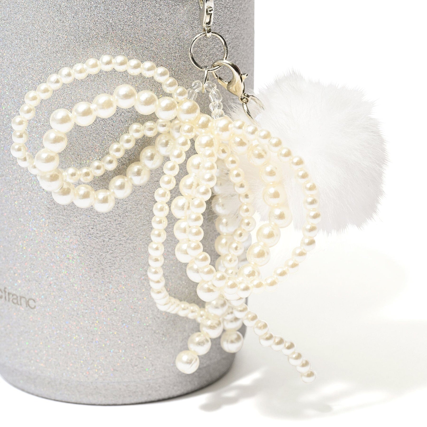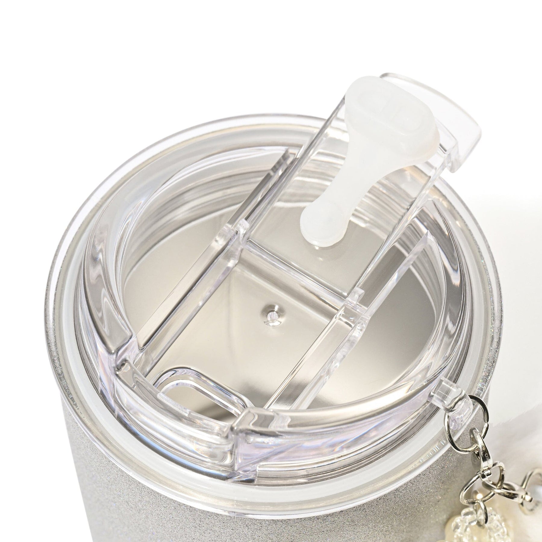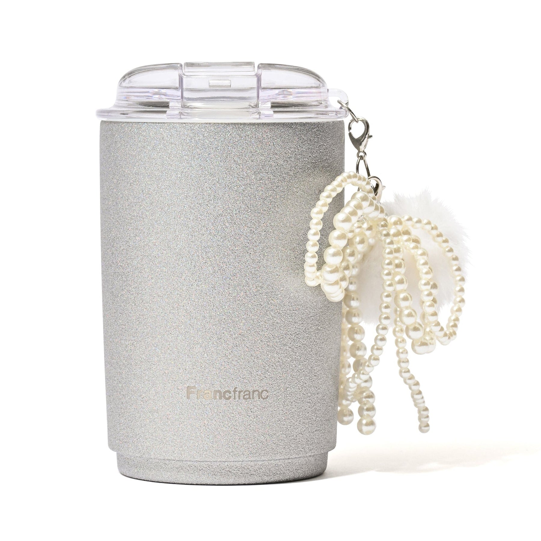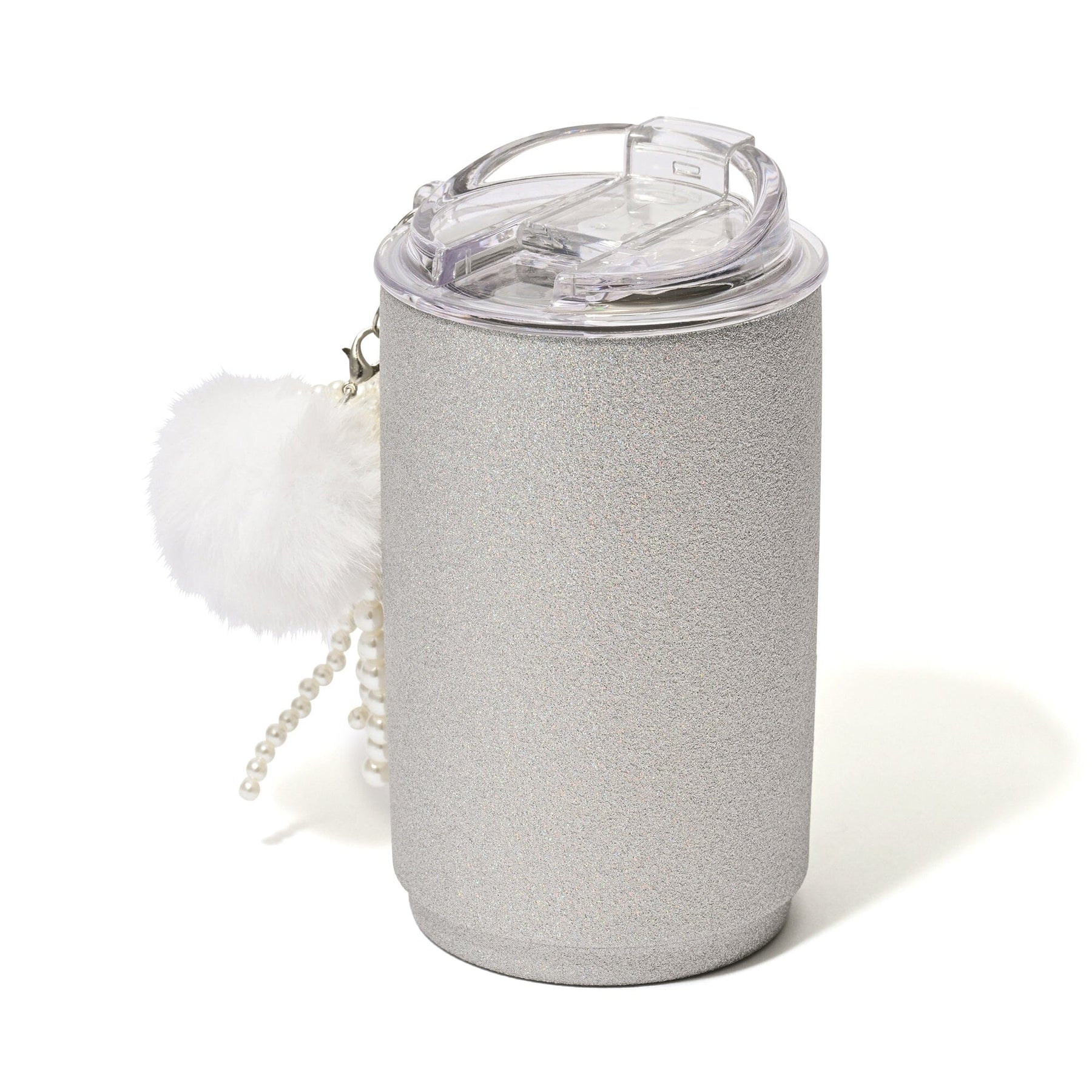 This sparkly, eye-catching tumbler with a charm is perfect for the Christmas season.The ribbon and fur charm is very cute.