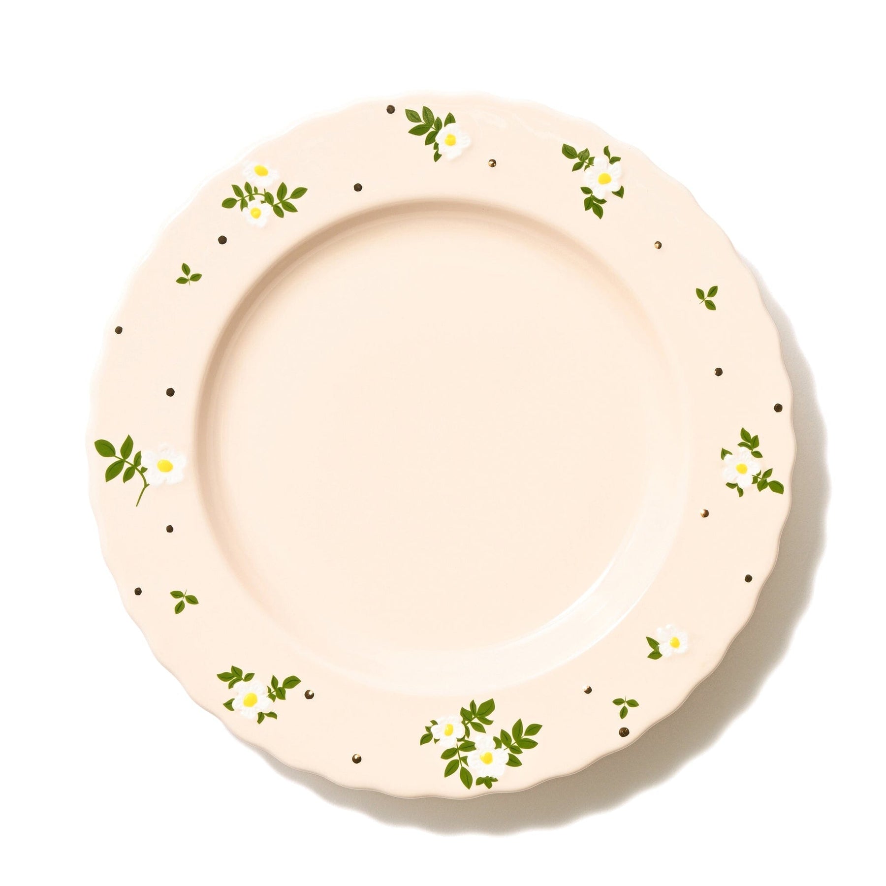 A cute plate with a trendy small floral pattern.The flower silhouettes are plump like embroidery. They will beautifully enhance cakes and other sweets.