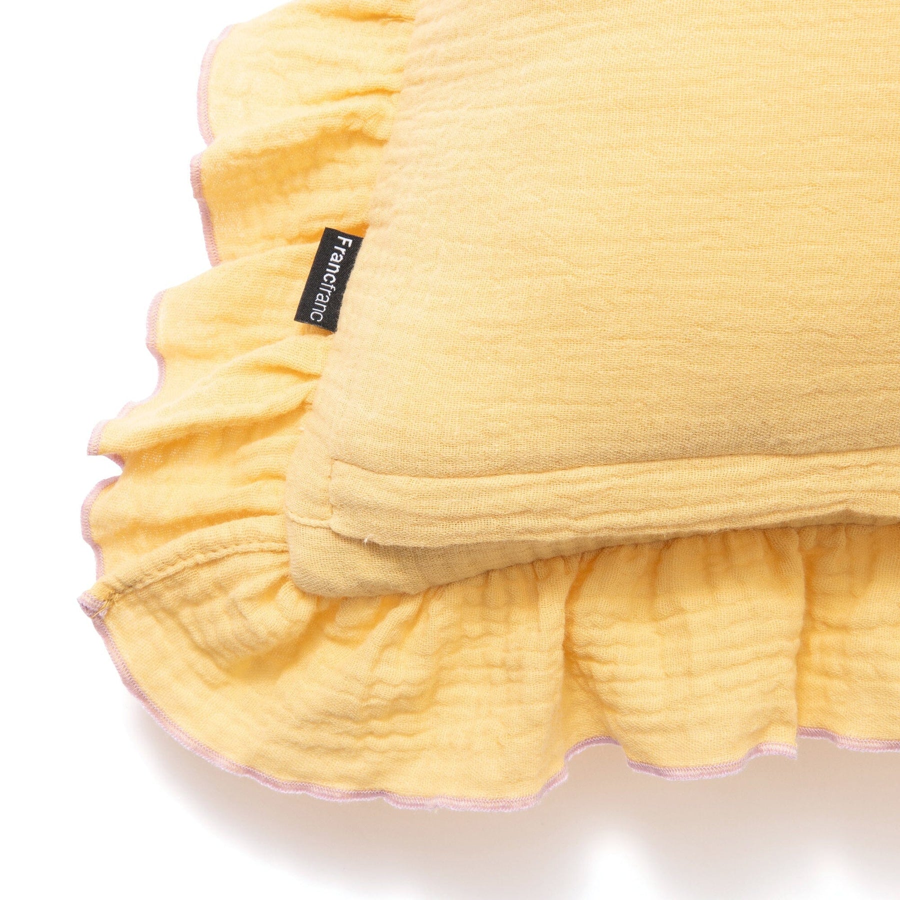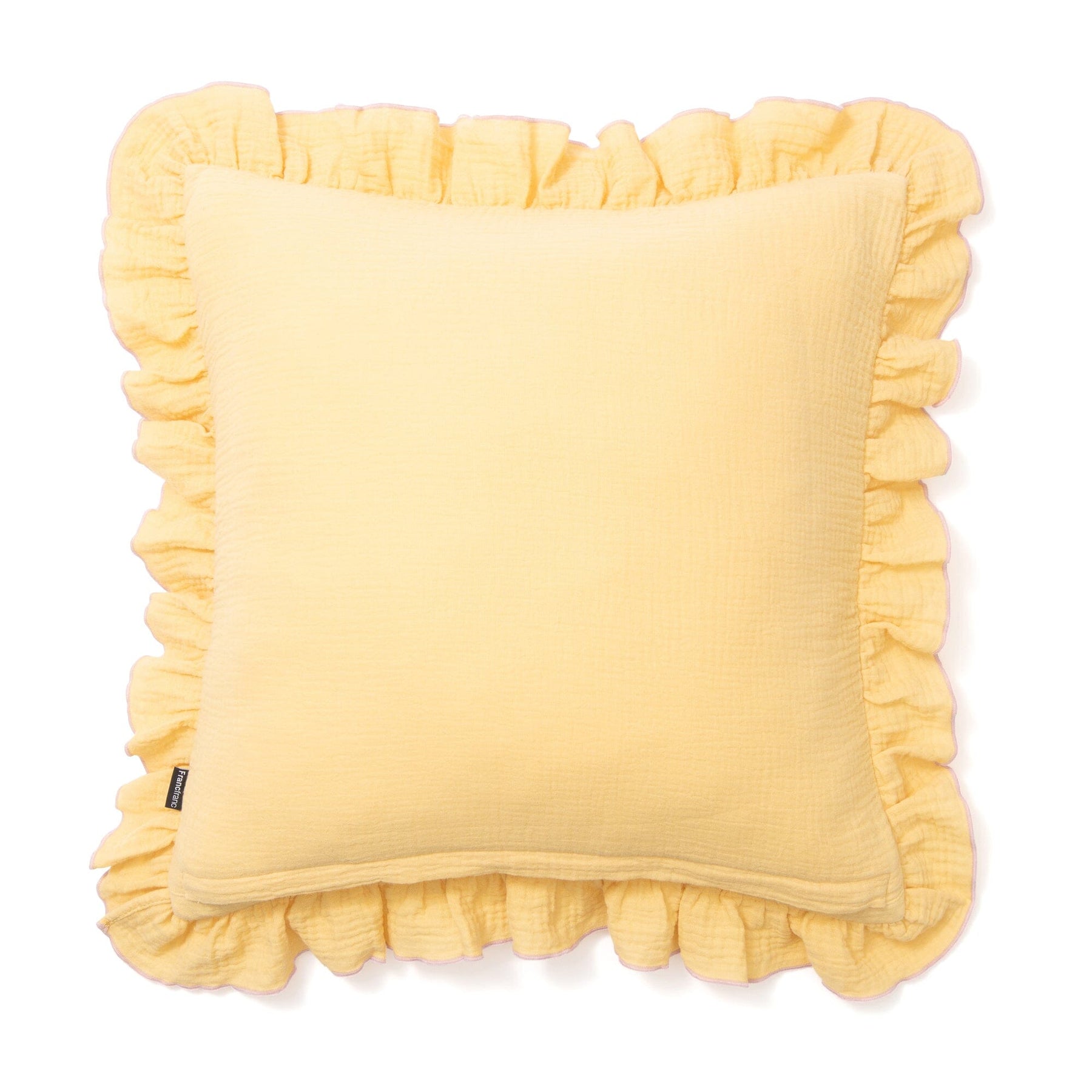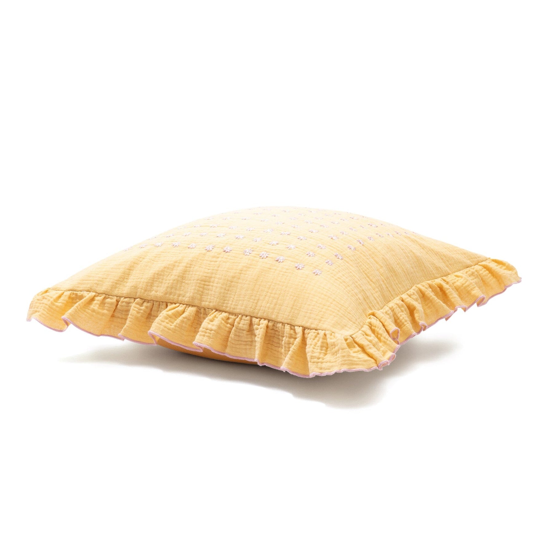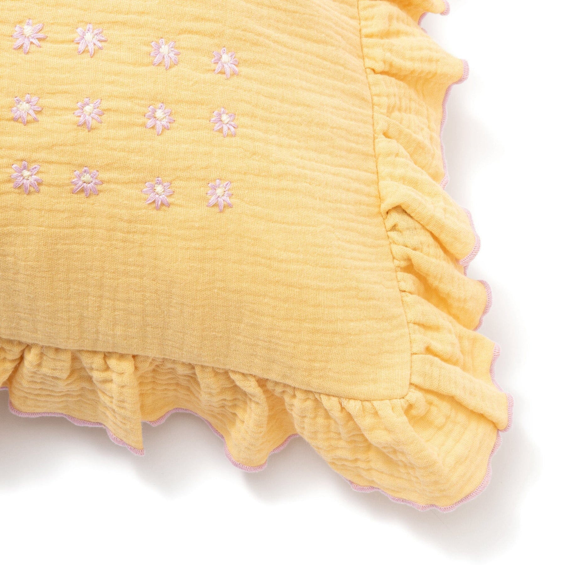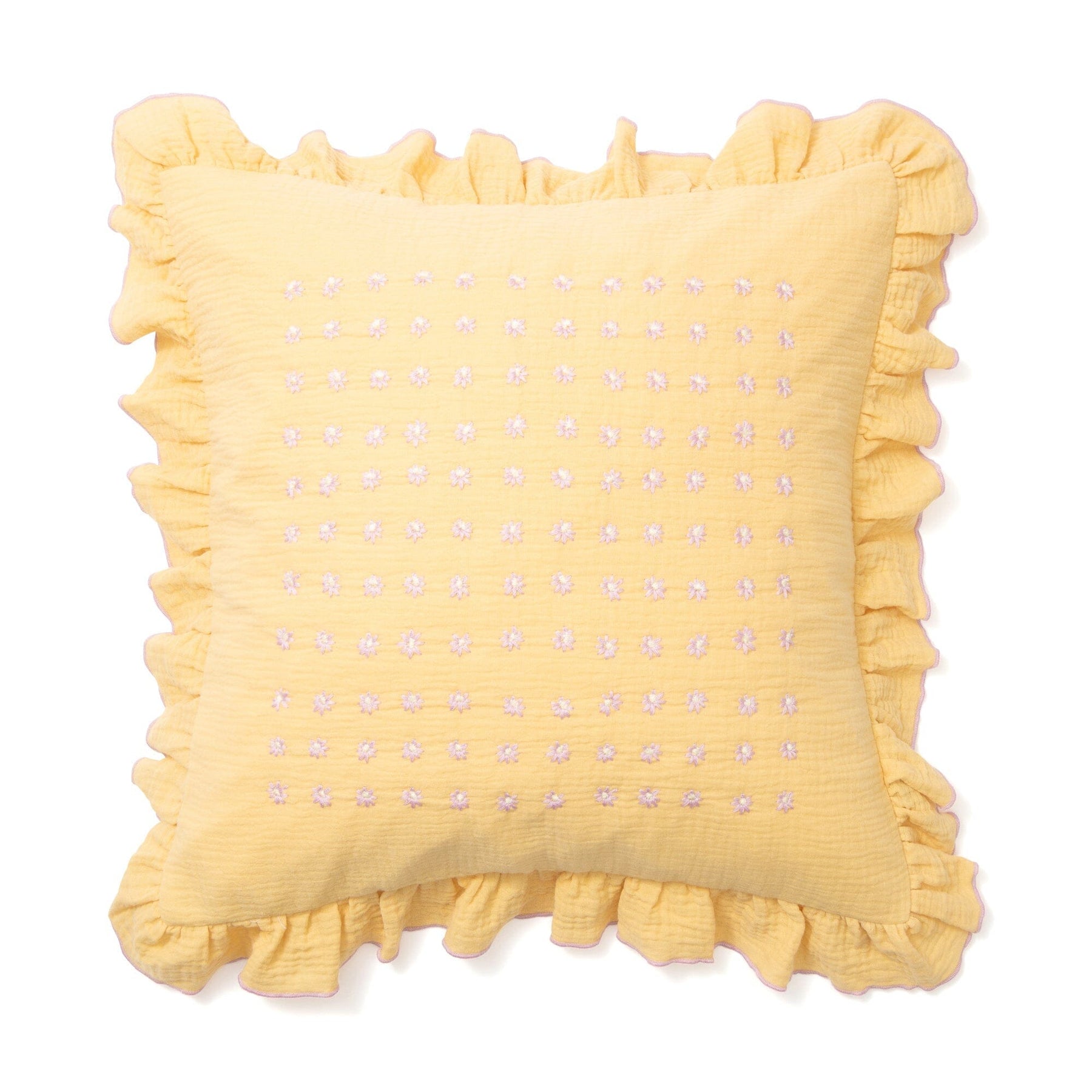 This cushion cover features lavish small floral embroidery on gauze fabric.The ruffles around the perimeter create a soft impression, adding a lovely touch to your room.