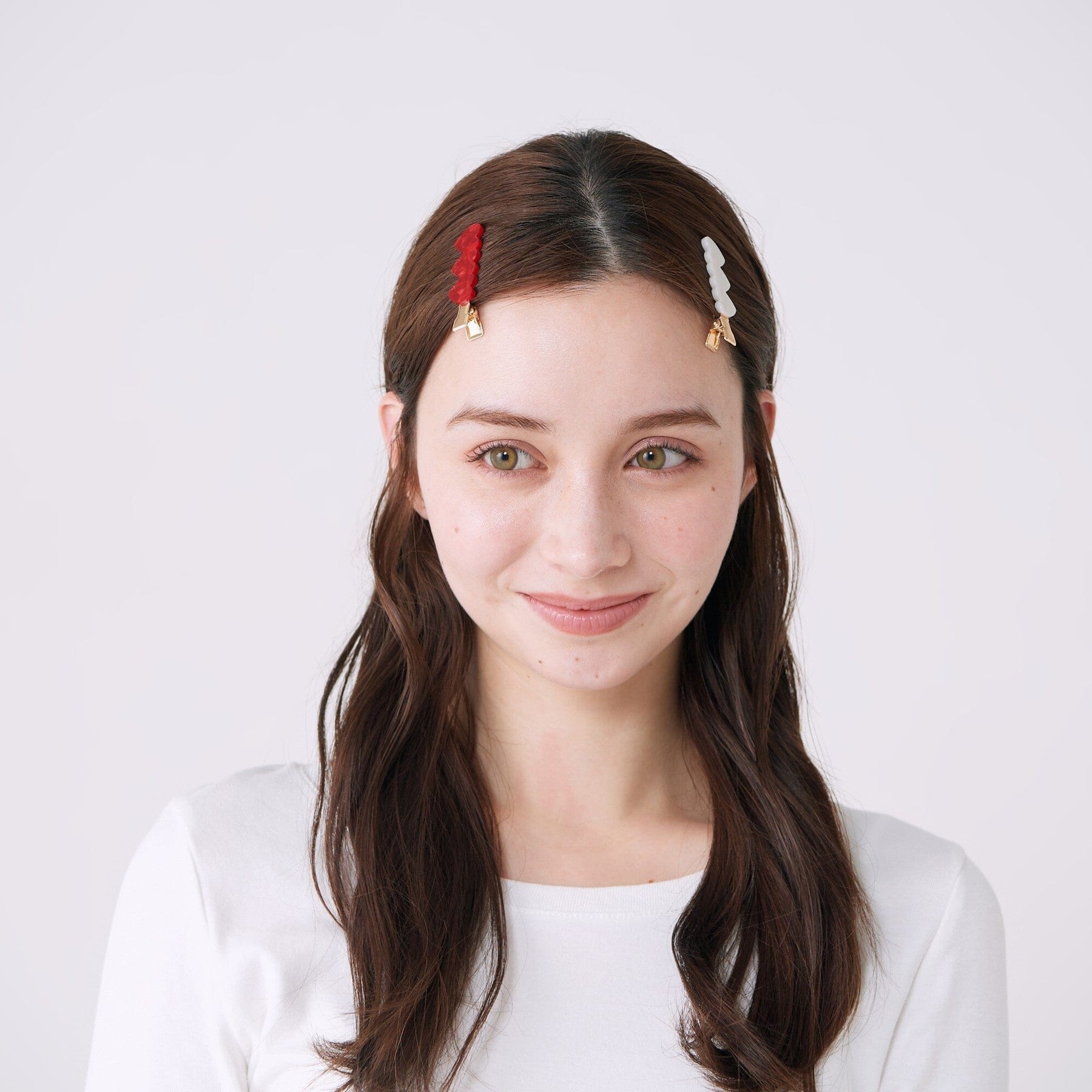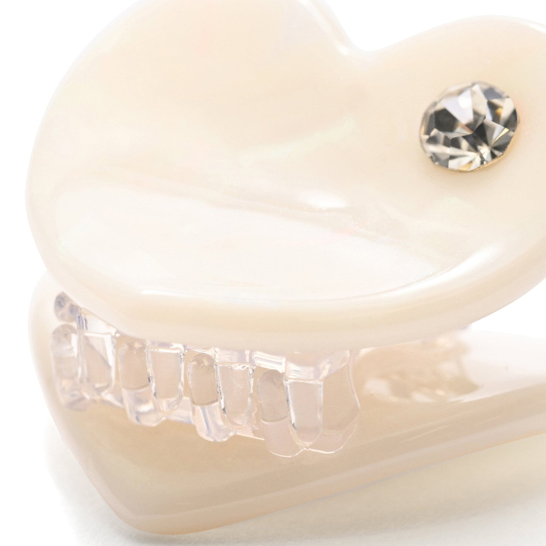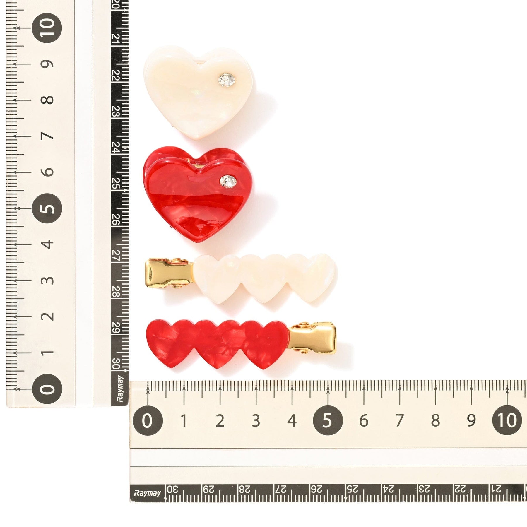 A set of cute heart-shaped bangs clips and mini hair clips.The sparkling glass beads add a cute touch.