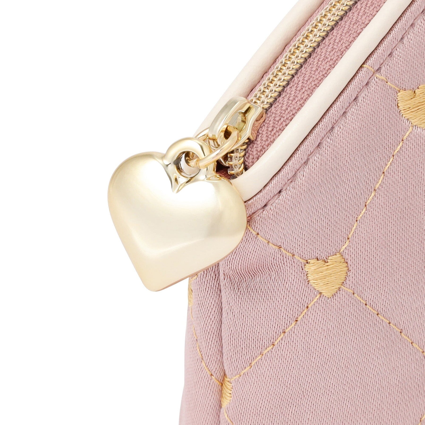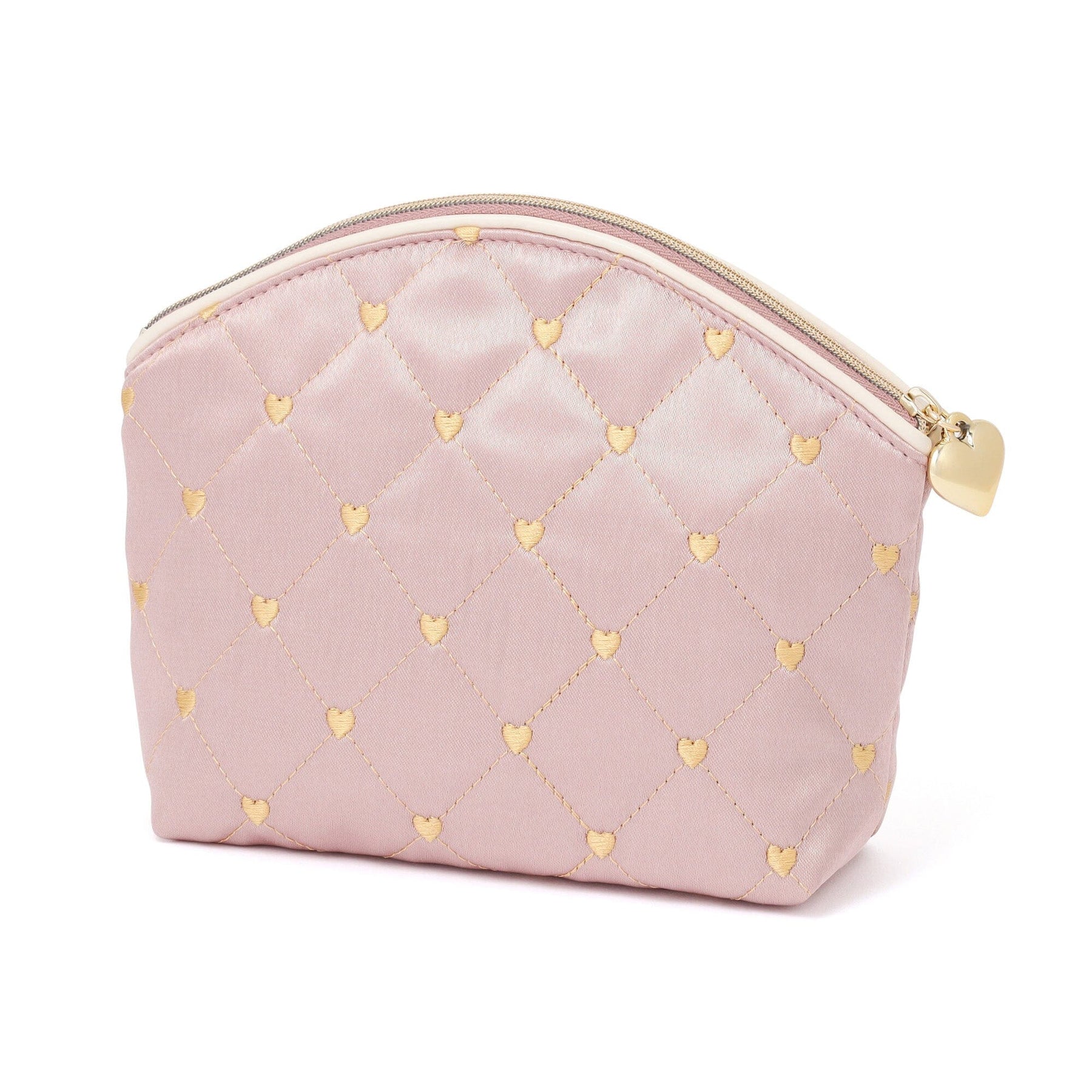 Heart Stitch Satin Pouch Large Light Pink
