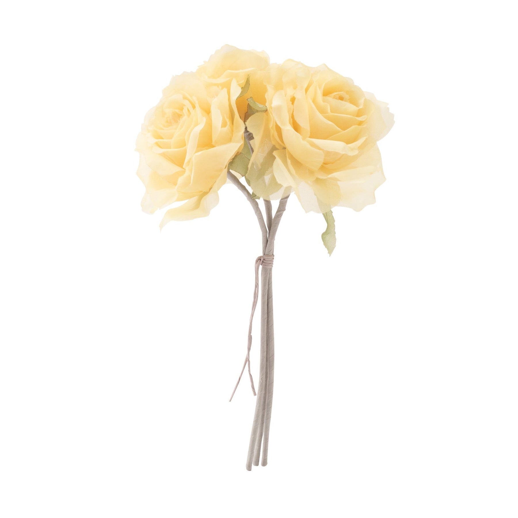 This special bouquet of artificial flowers has a trendy, sheer translucent feel.