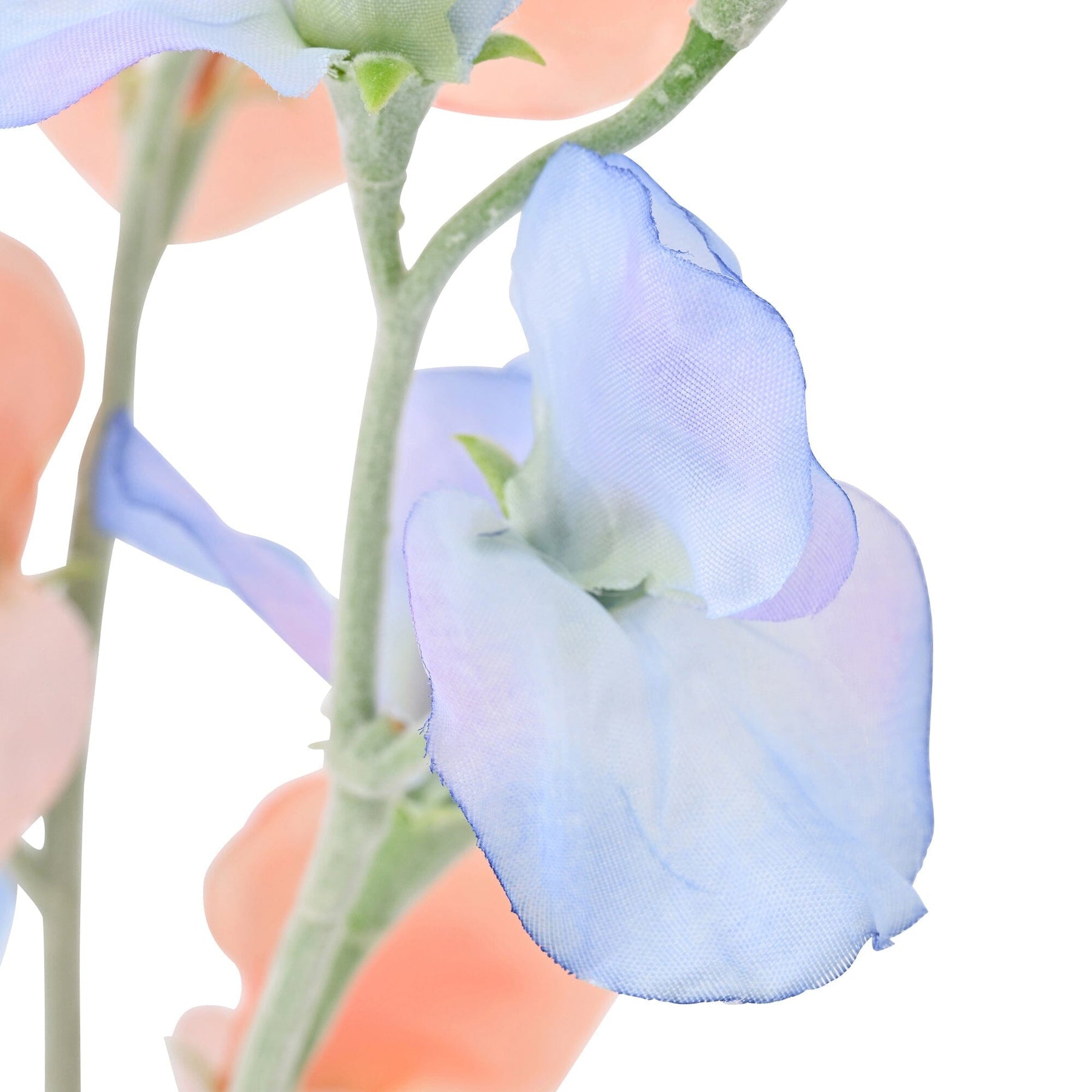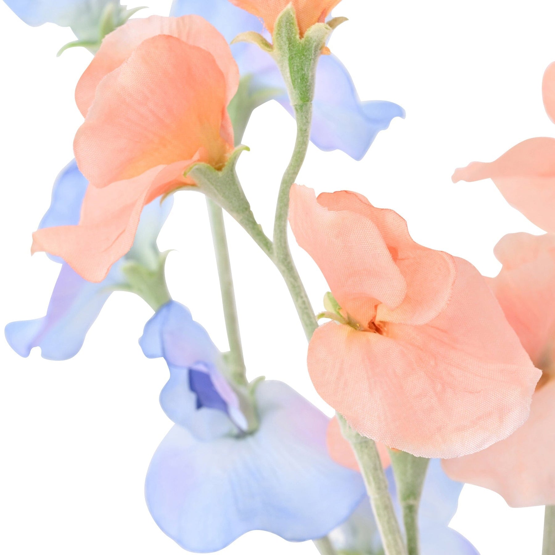 The combination of pale light blue and orange sweet peas creates a trendy design.