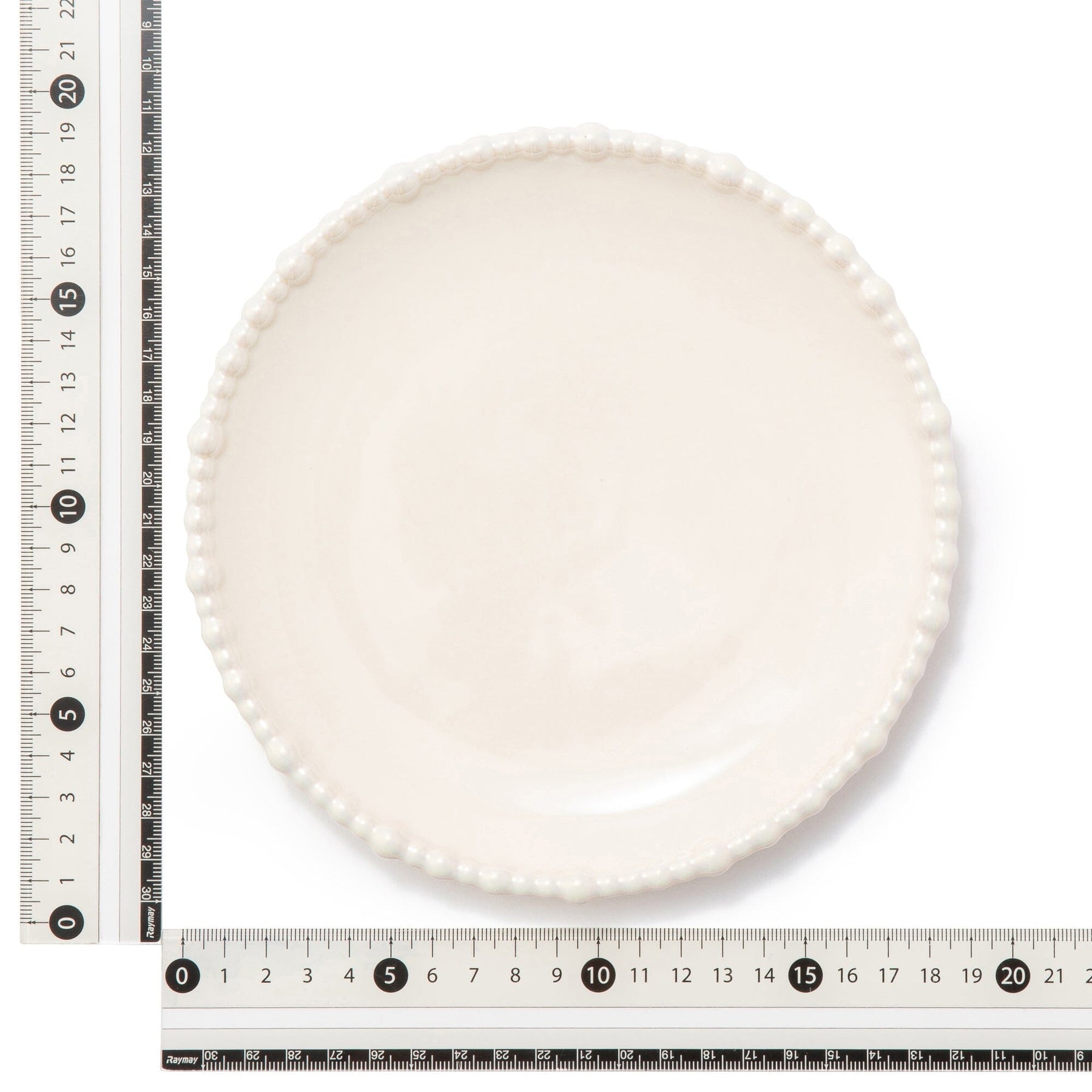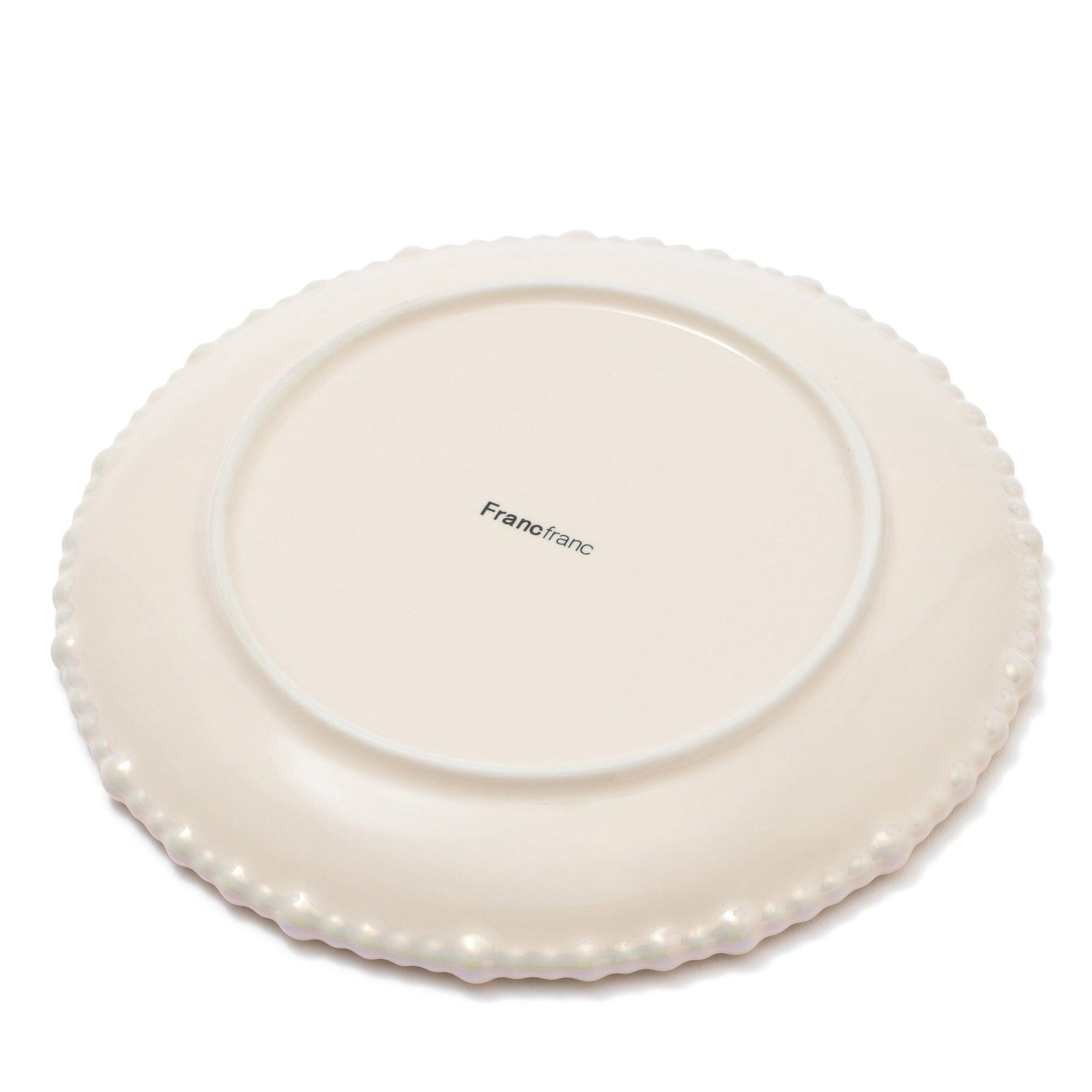 A plate decorated with randomly sized pearls on the rim.A gorgeous design that is also easy to use in everyday life.