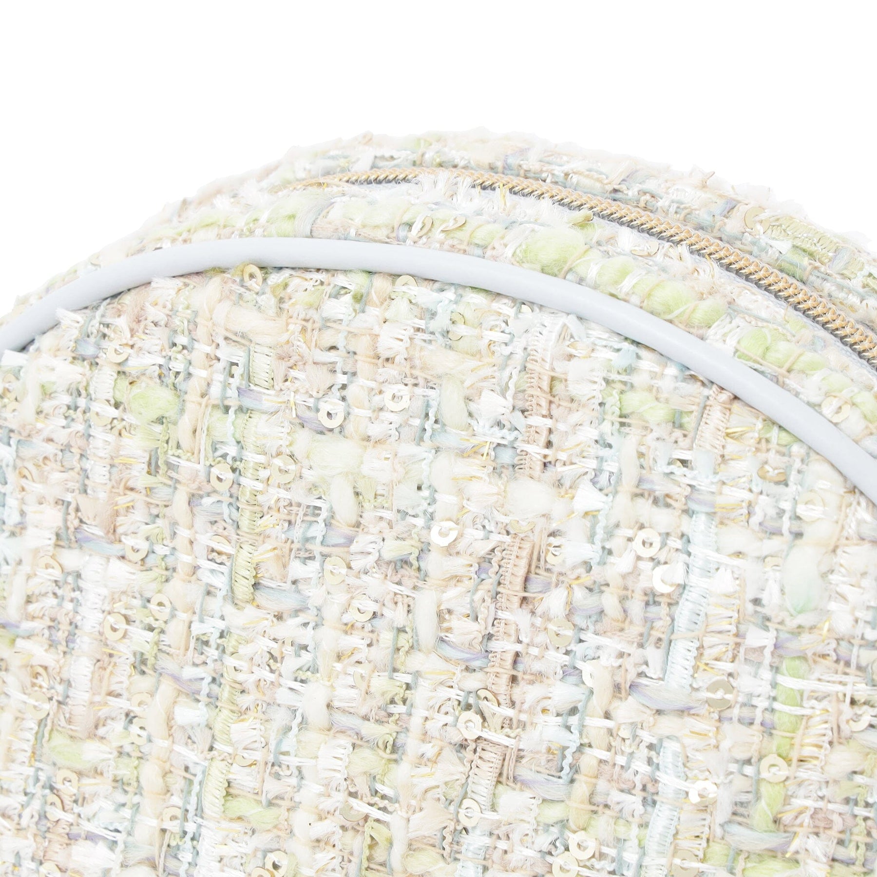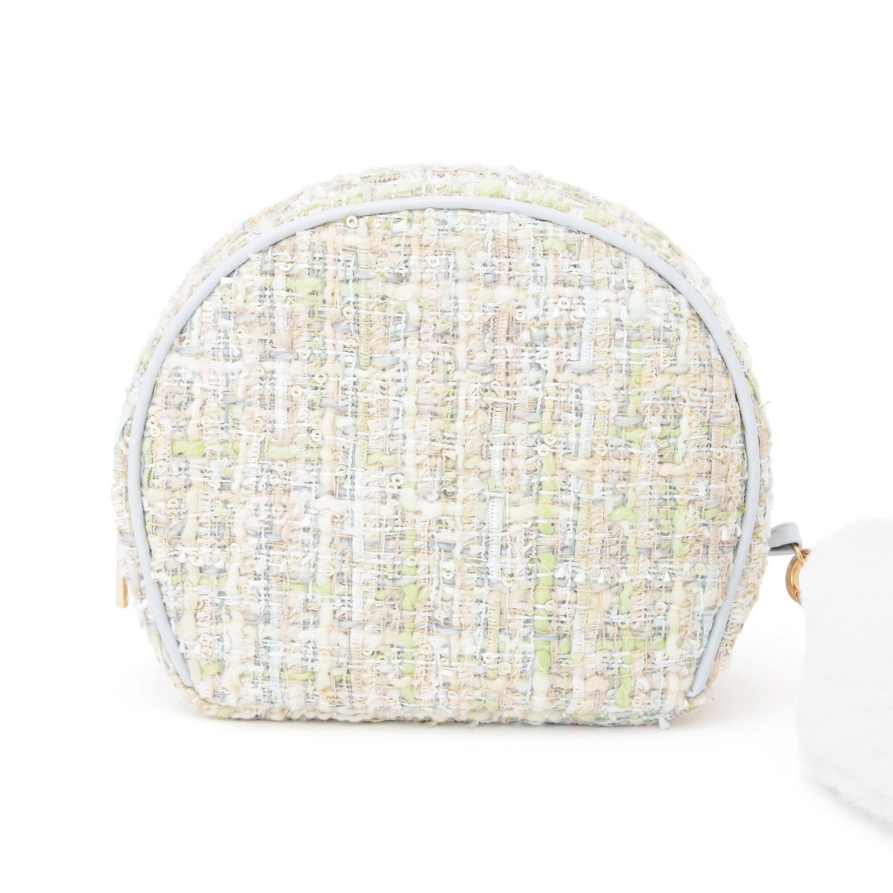 This pouch features a classic Francfranc design, combining pastel-colored tweed and fur.