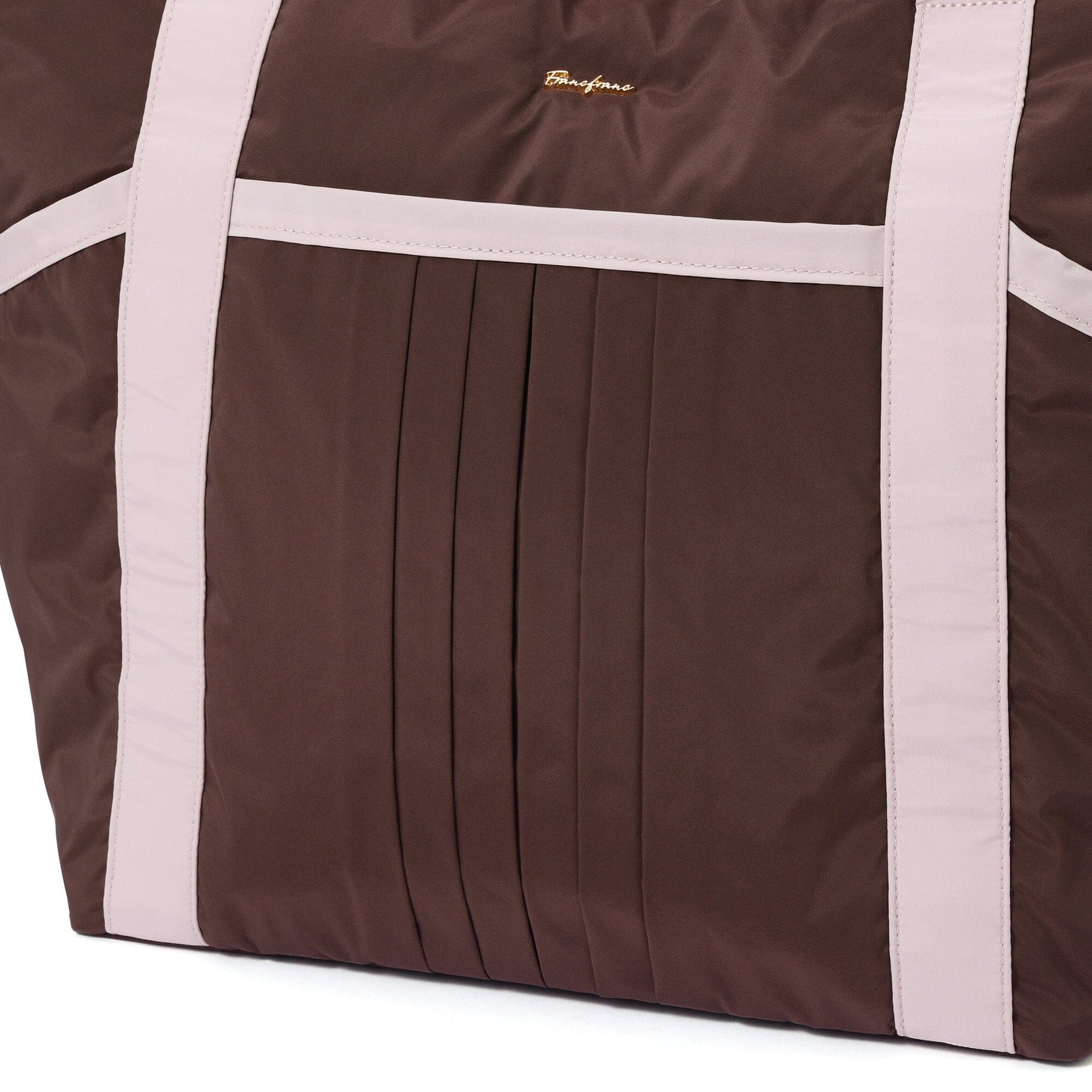 A cute, pleated travel tote bag for adults.It can hold plenty of luggage and is ideal for short trips of one or two nights. It can be attached to the handle of a suitcase for easy transport.