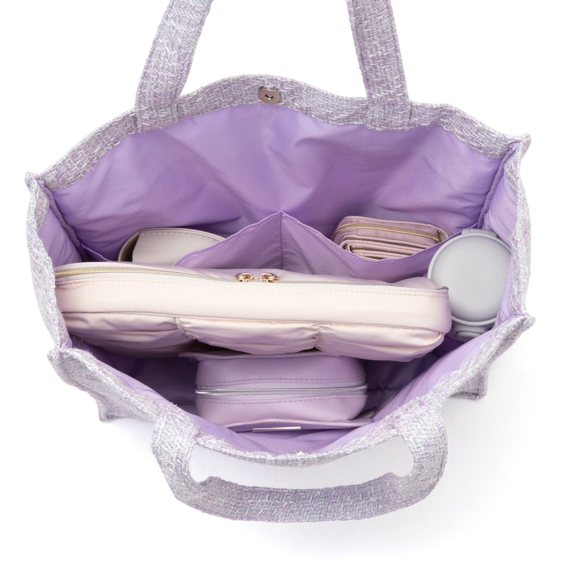 The lightweight color of this popular tweed bag makes it perfect for spring and summer.