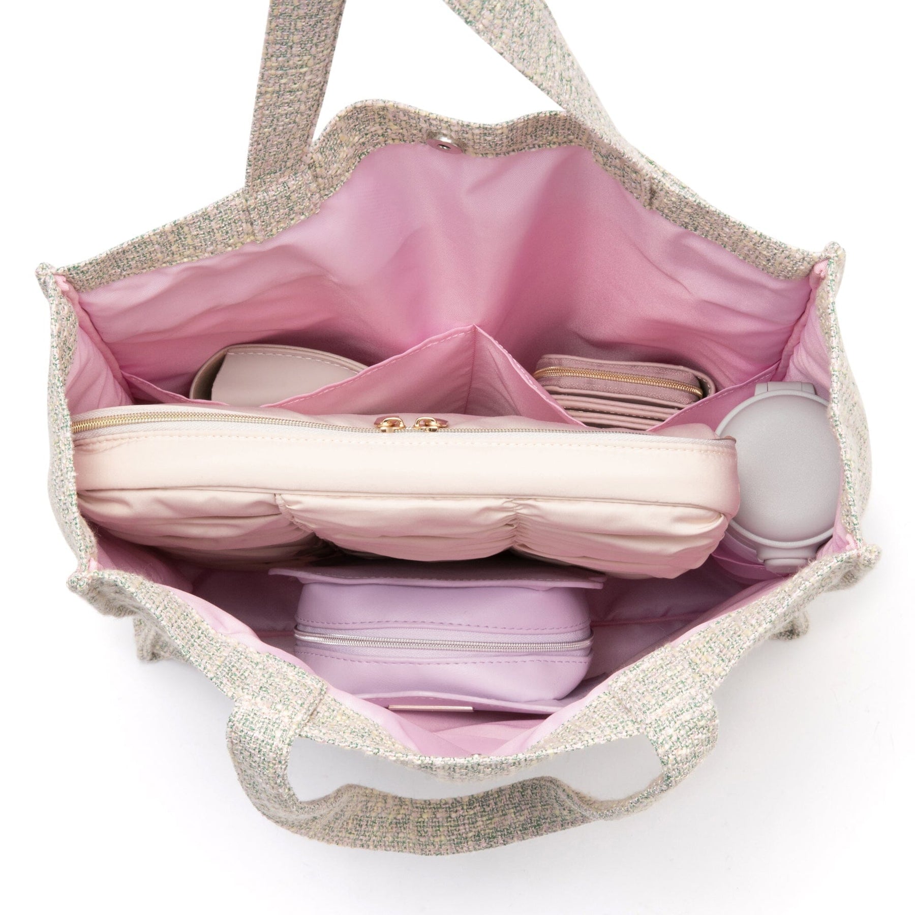 The lightweight color of this popular tweed bag makes it perfect for spring and summer.