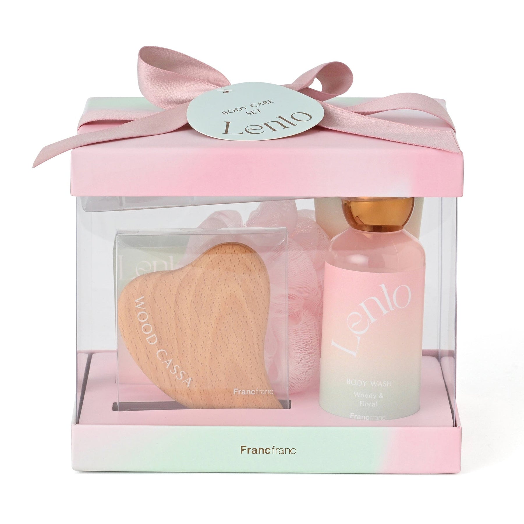 LENTO means "gently."This body care set gently relieves end-of-year fatigue and provides a relaxing, soothing experience.