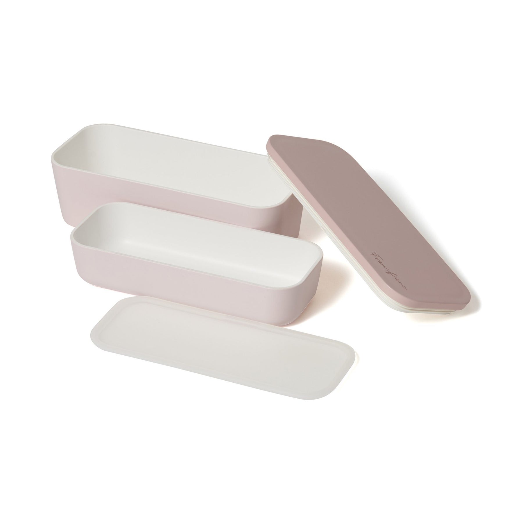 A two-stage lunch box with a simple design that has an antibacterial effect.