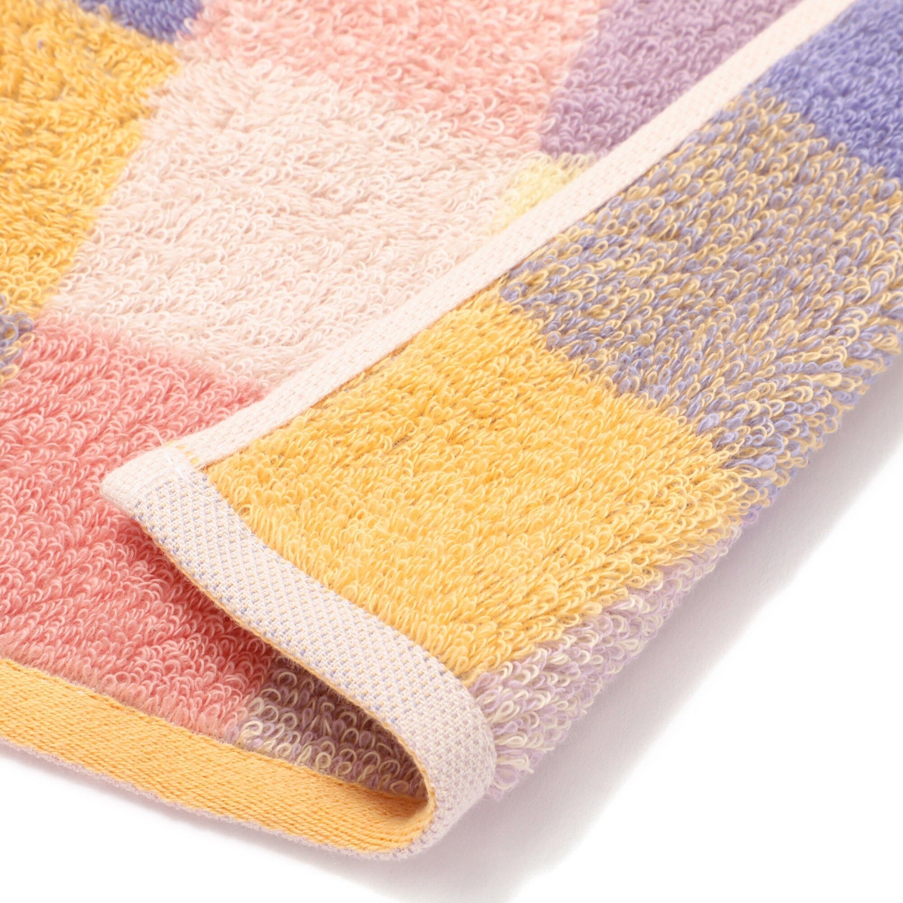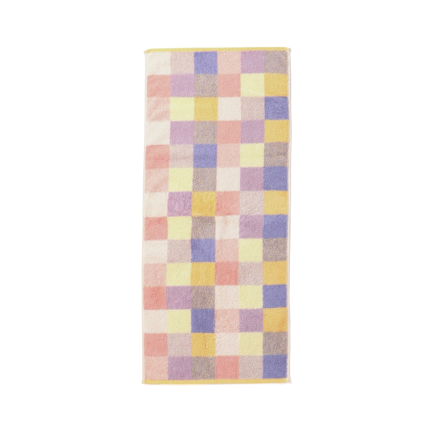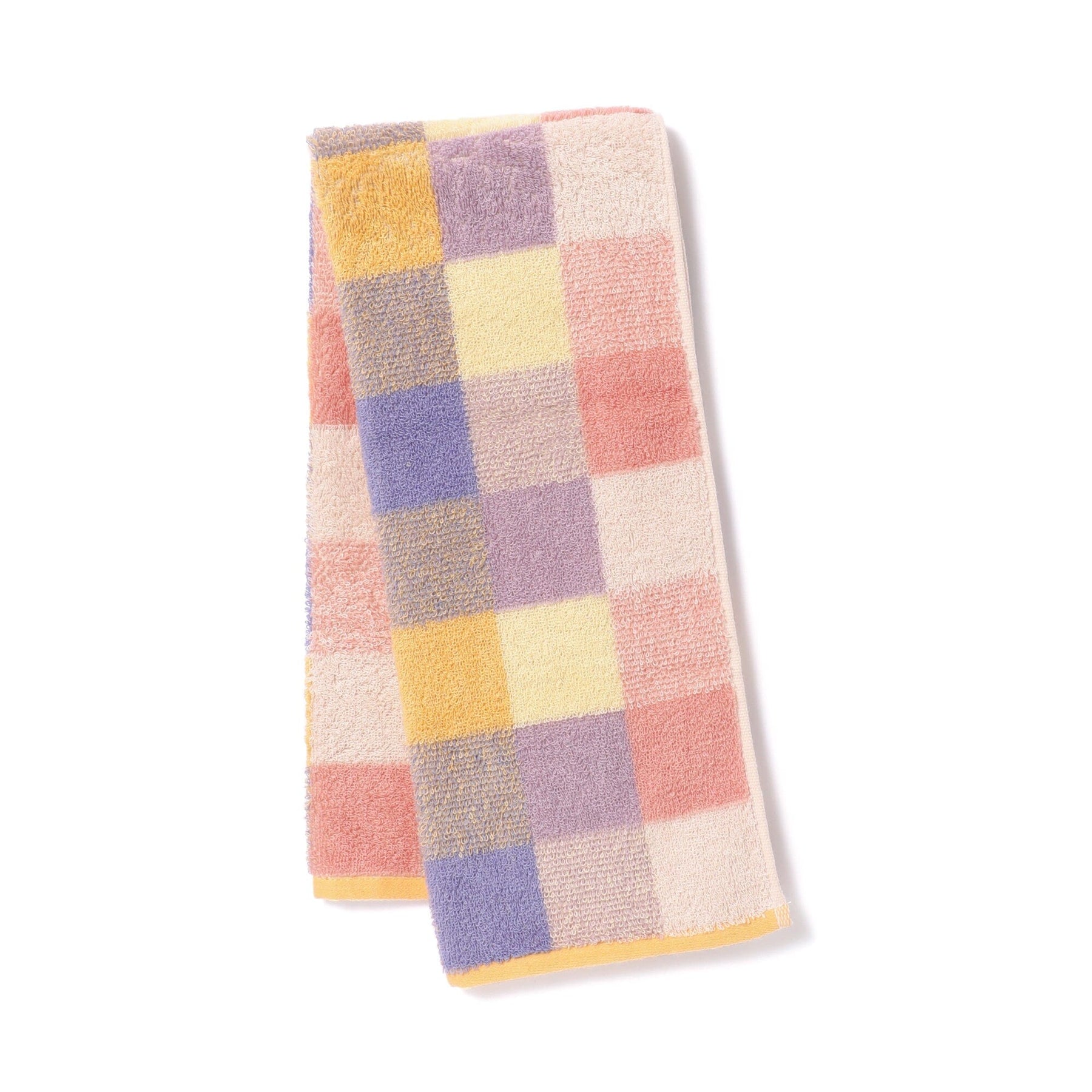 A face towel with a pop mixed check pattern.Ultra-softly twisted yarn makes it soft to the touch, and when used with the bath towels and hair bands from the same series, it brightens up your bathroom space.