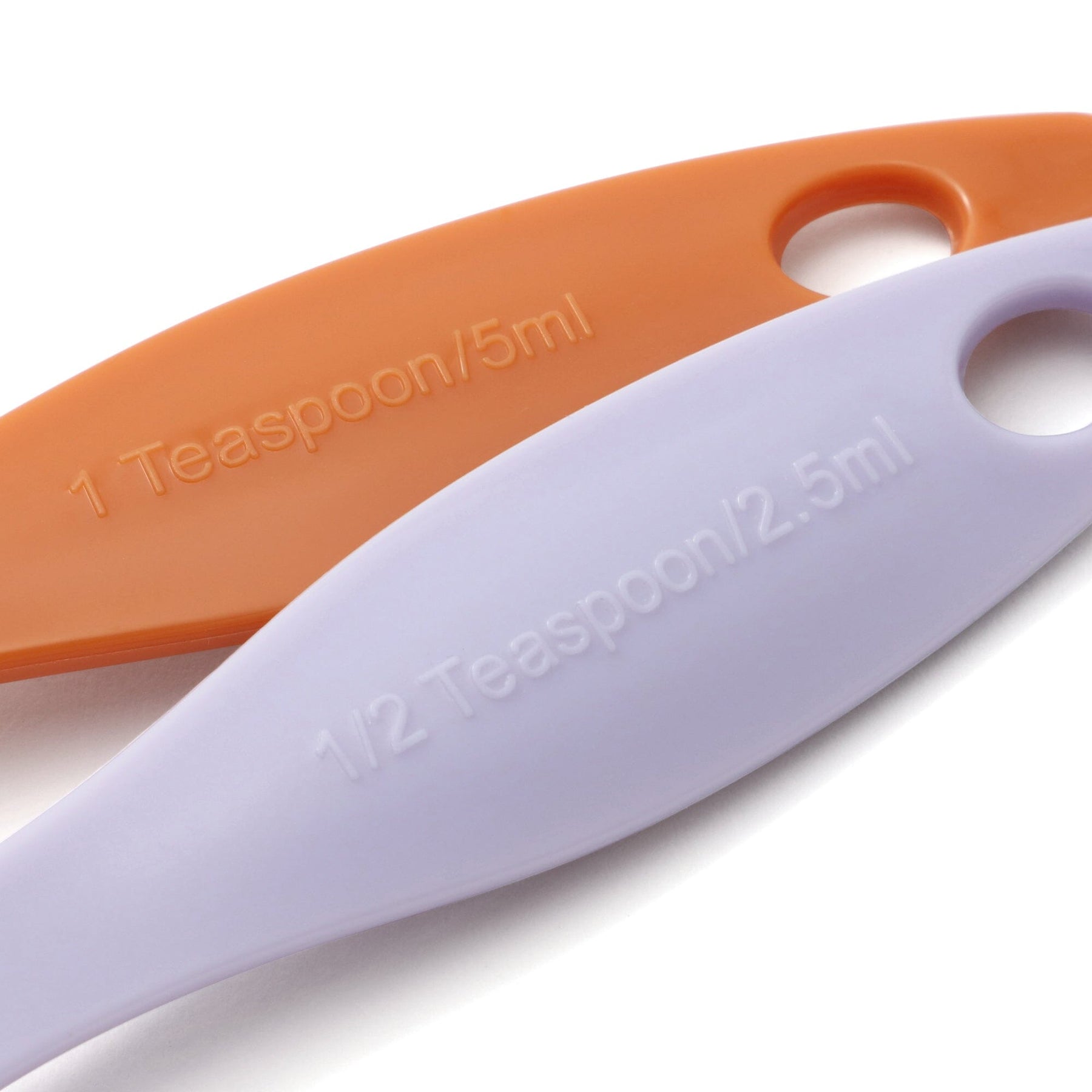 This is a 4-piece lightweight spoon with 1 tablespoon (15ml), 1/2 tablespoon (7.5ml), 1 teaspoon (5ml), and 1/2 teaspoon (2.5ml).The rings are easy to remove, so you can use it for a variety of dishes and baking.