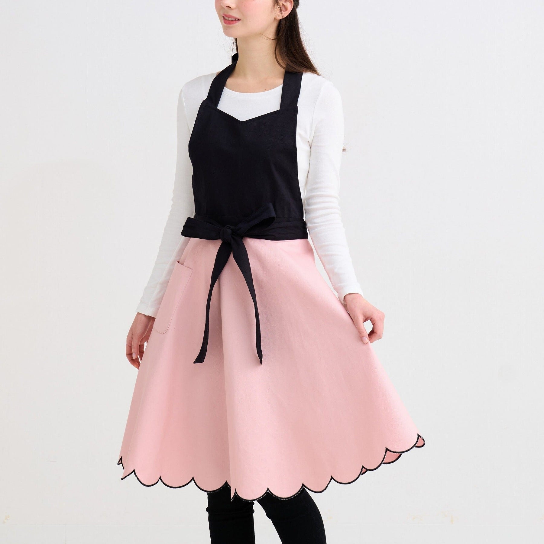 A cute apron with scallops on the hem.The smooth feel of the cotton is comfortable and highly heat resistant, making it perfect for cooking.