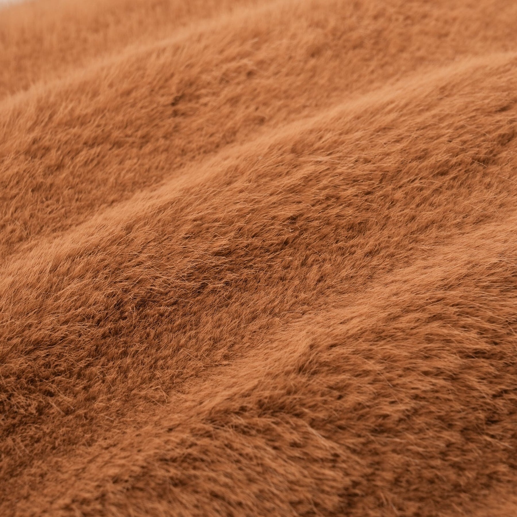 This cushion cover features a horizontally wavy, textured fur accent.The caramel color creates a warm interior.