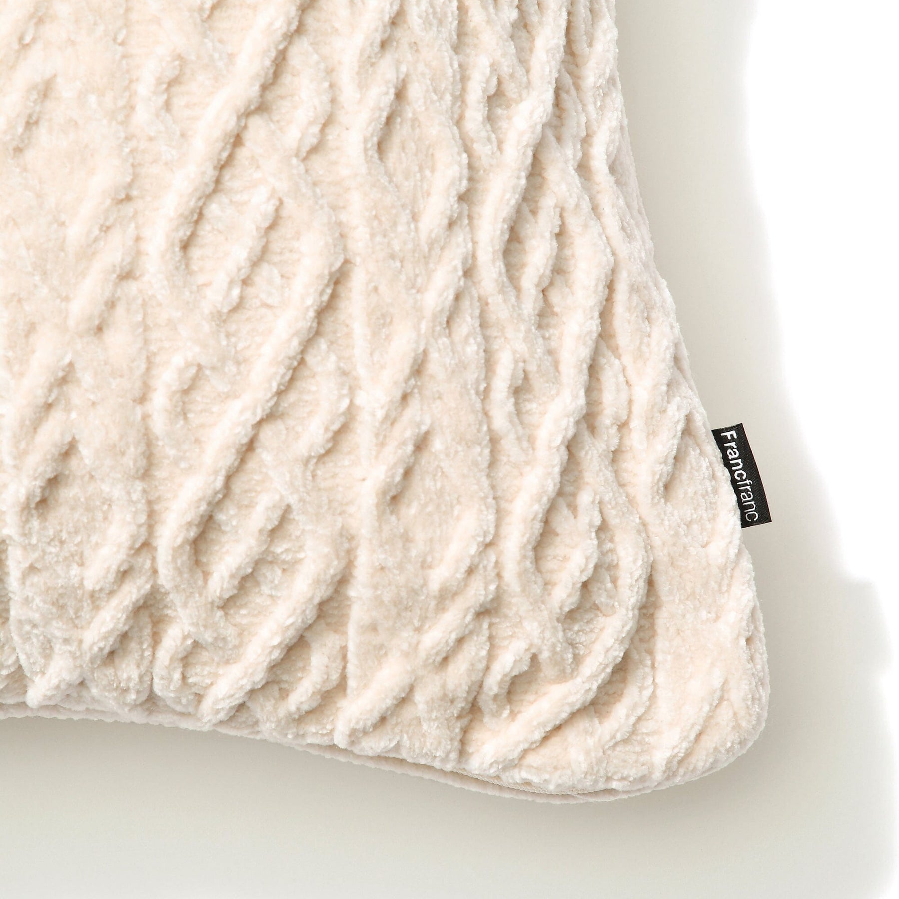 This cushion cover uses chenille yarn to create a three-dimensional cable pattern.It has a warm and elegant design.