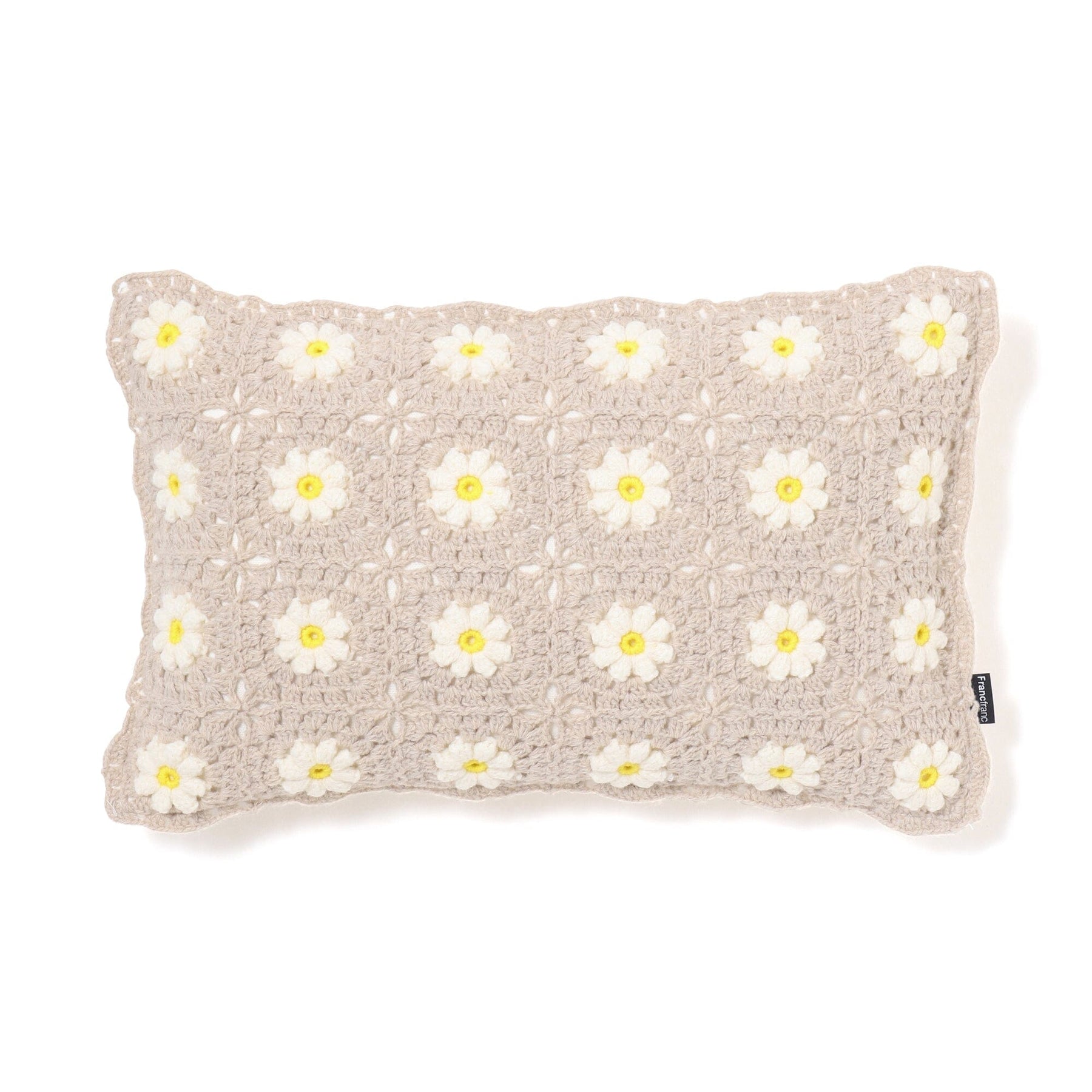 Crochet Flower Cushion Cover 400X250 Beige