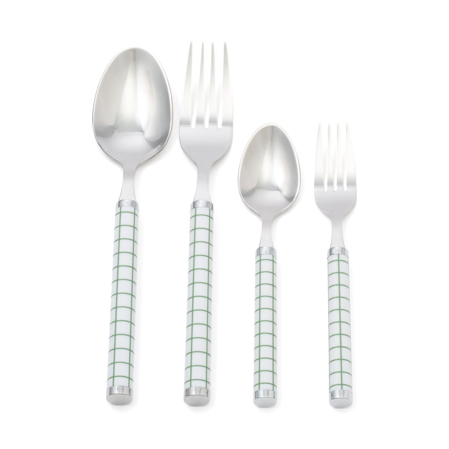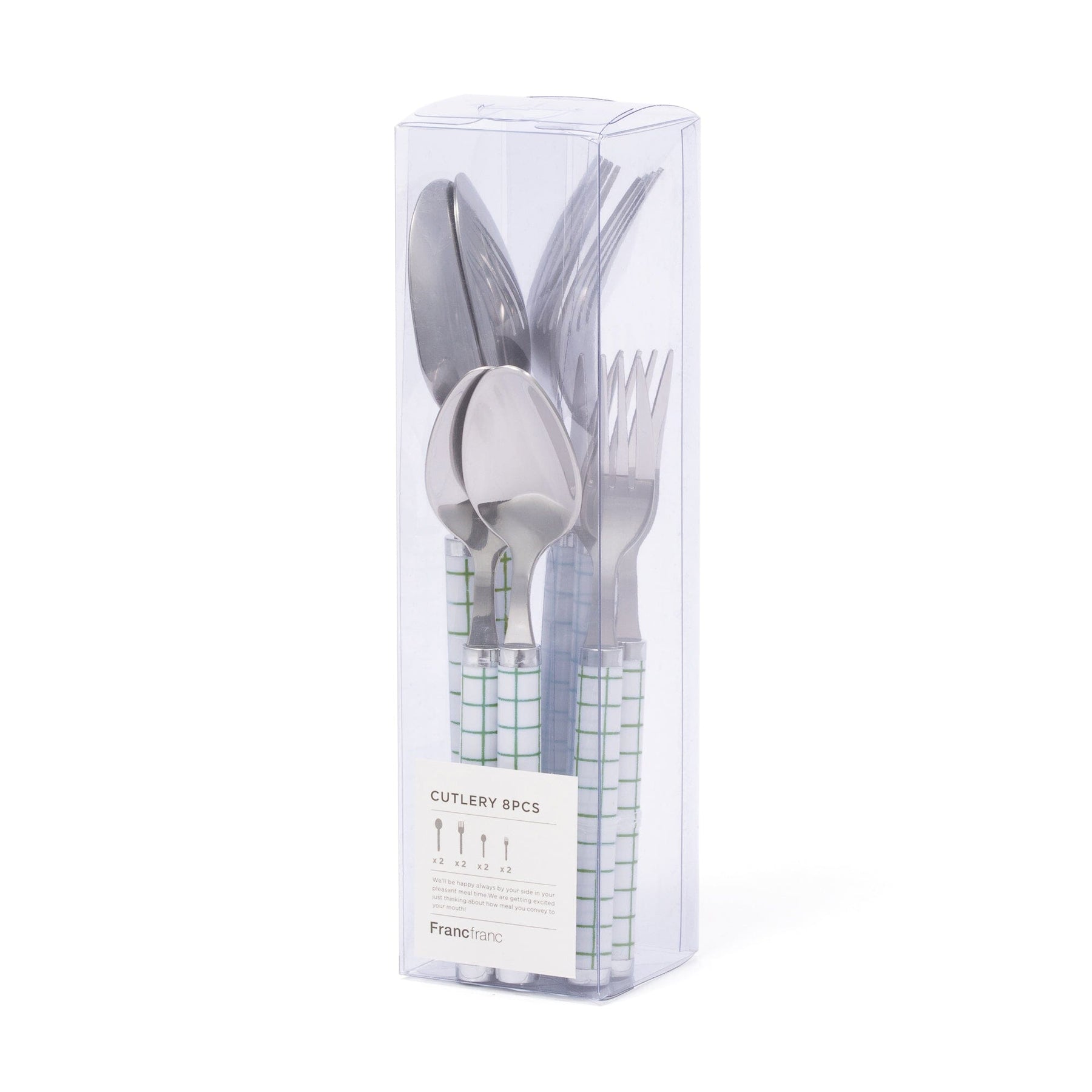 This cutlery set includes two dinner spoons, two forks, two teaspoons, and two cake forks.