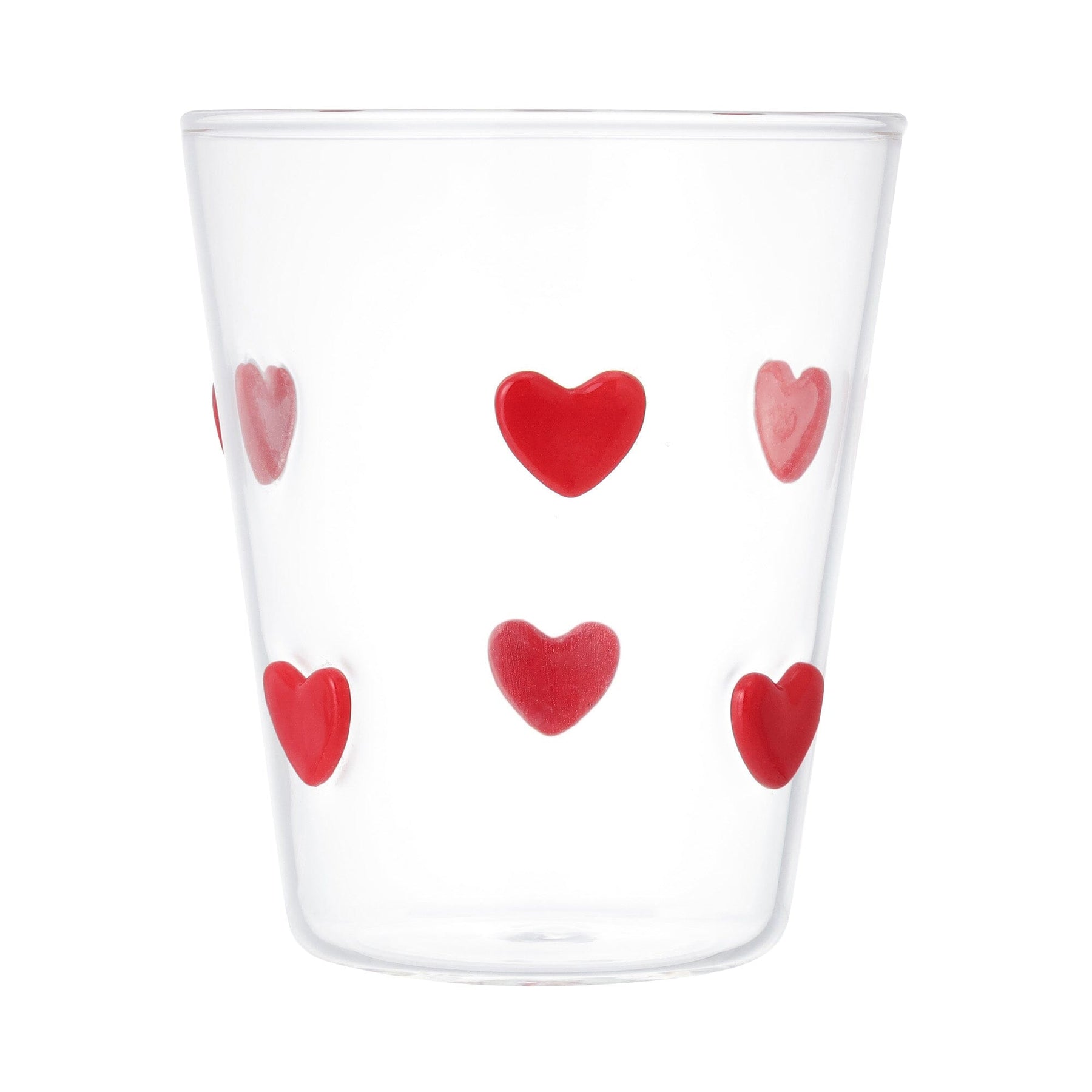 This cute glass tumbler is decorated with lots of hearts.