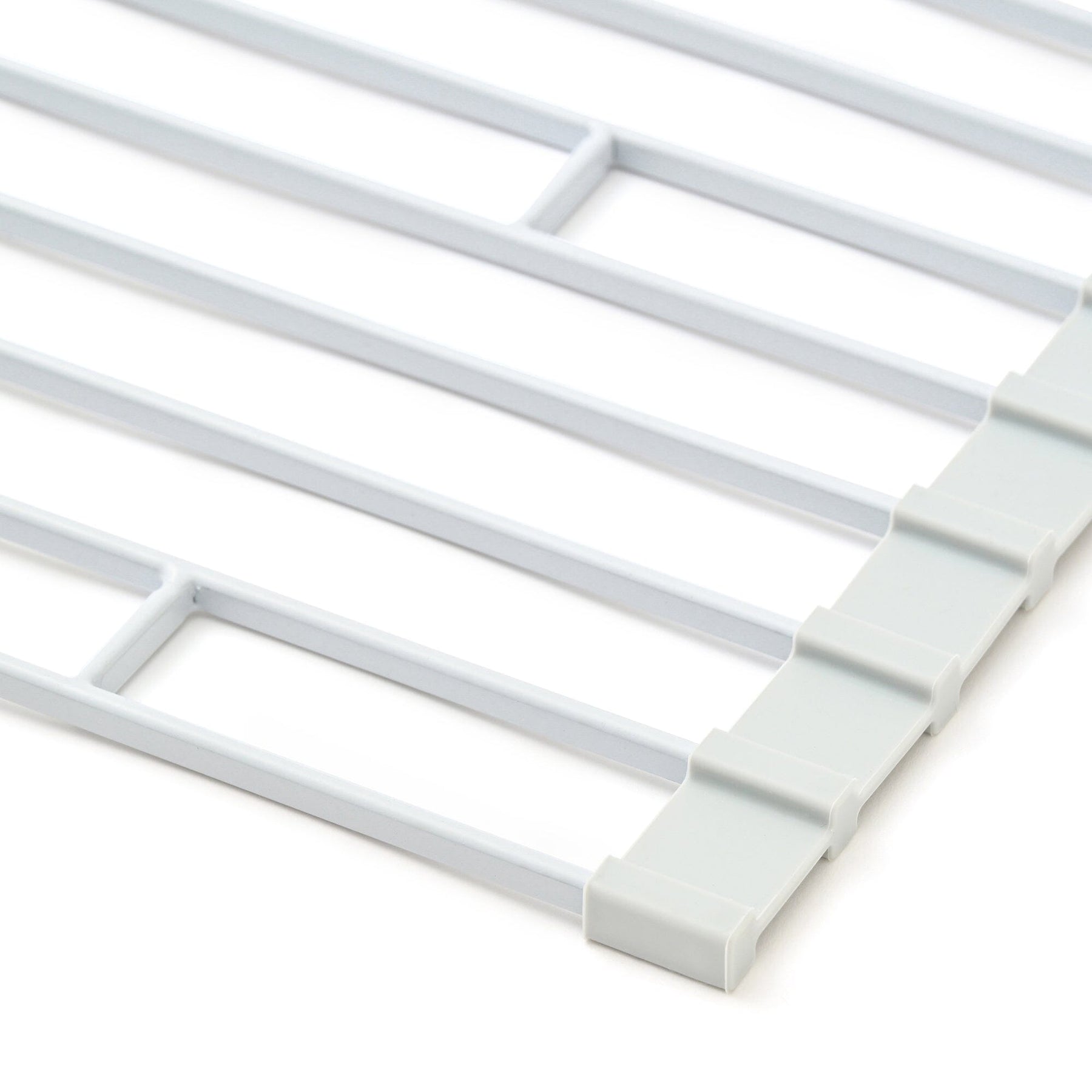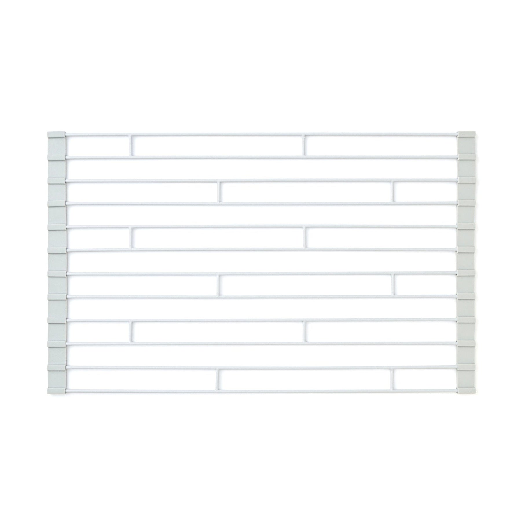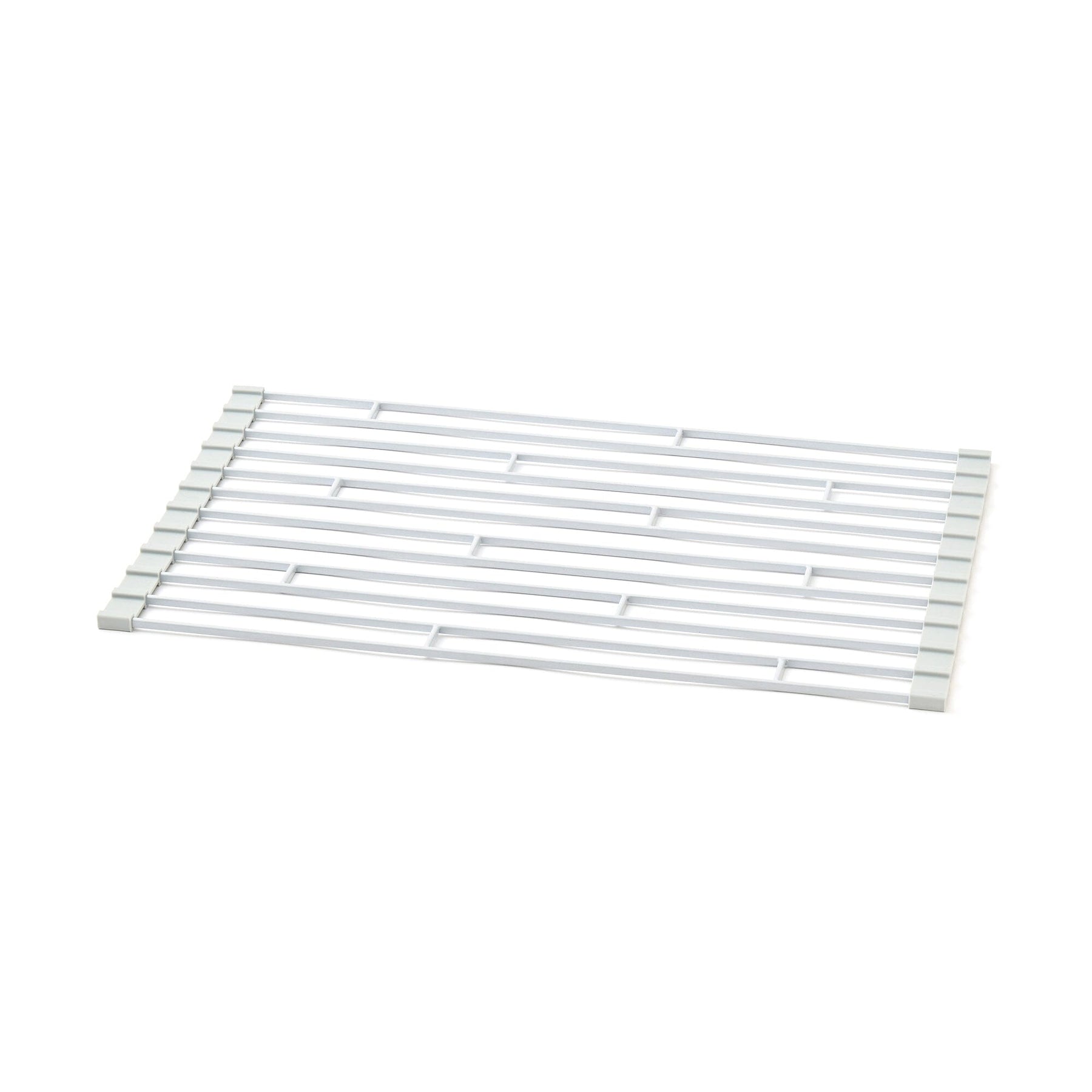 This dish rack can be rolled up for compact storage when not in use.This convenient, space-saving dish rack features a design with a ladder-like design that allows dishes to be placed upright to drain.