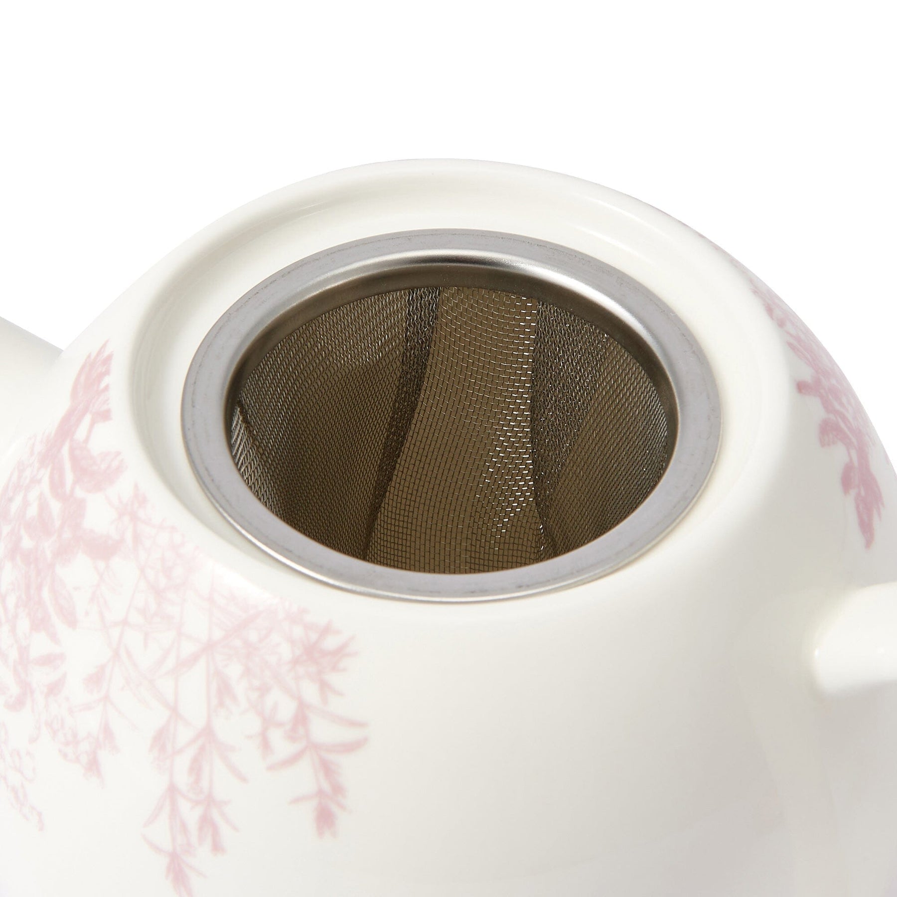 Size: W110×D190×H133mm Capacity: 650mlMaterial: Body: New bone china, Tea strainer: Stainless steel