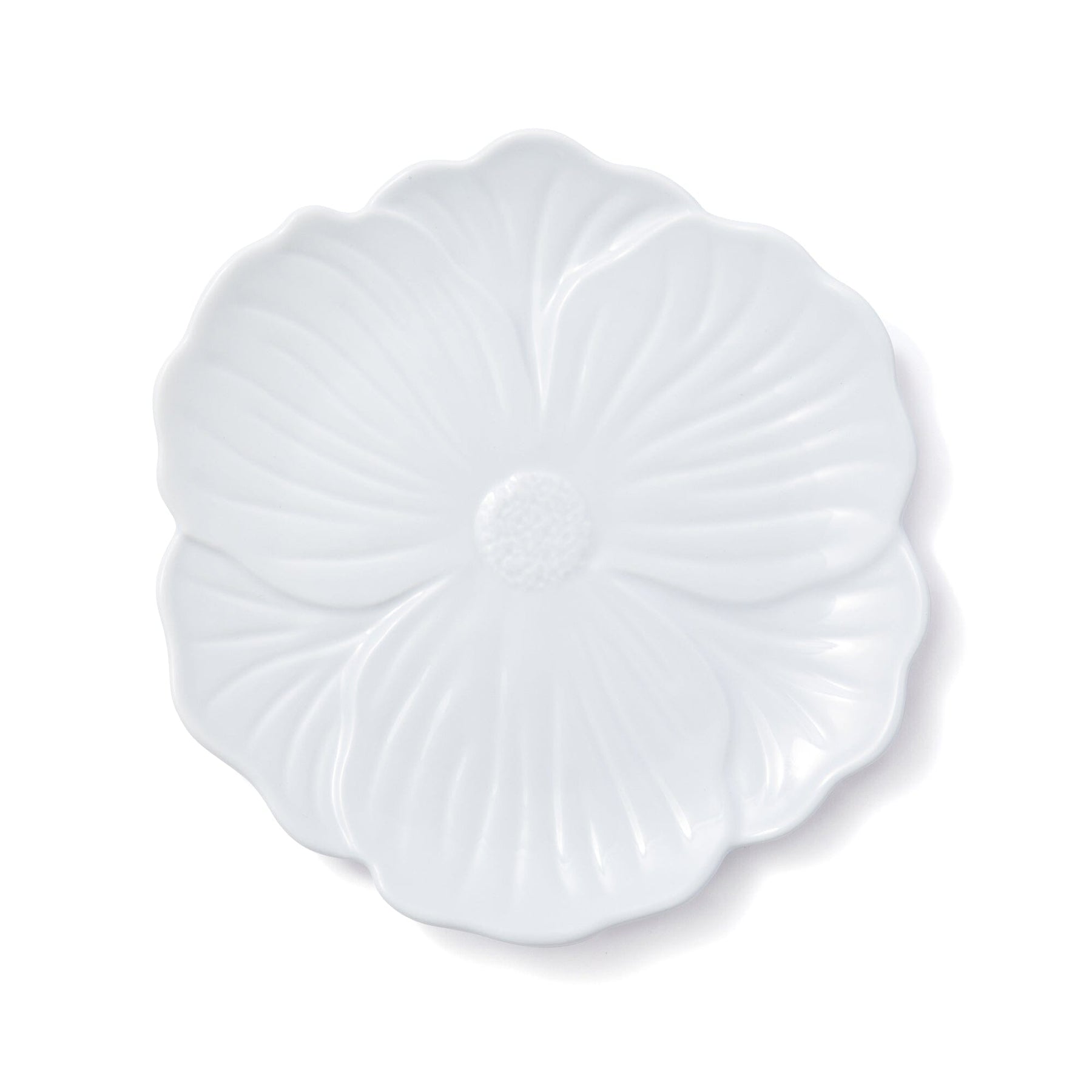 A plate with a lovely flower-shaped design.