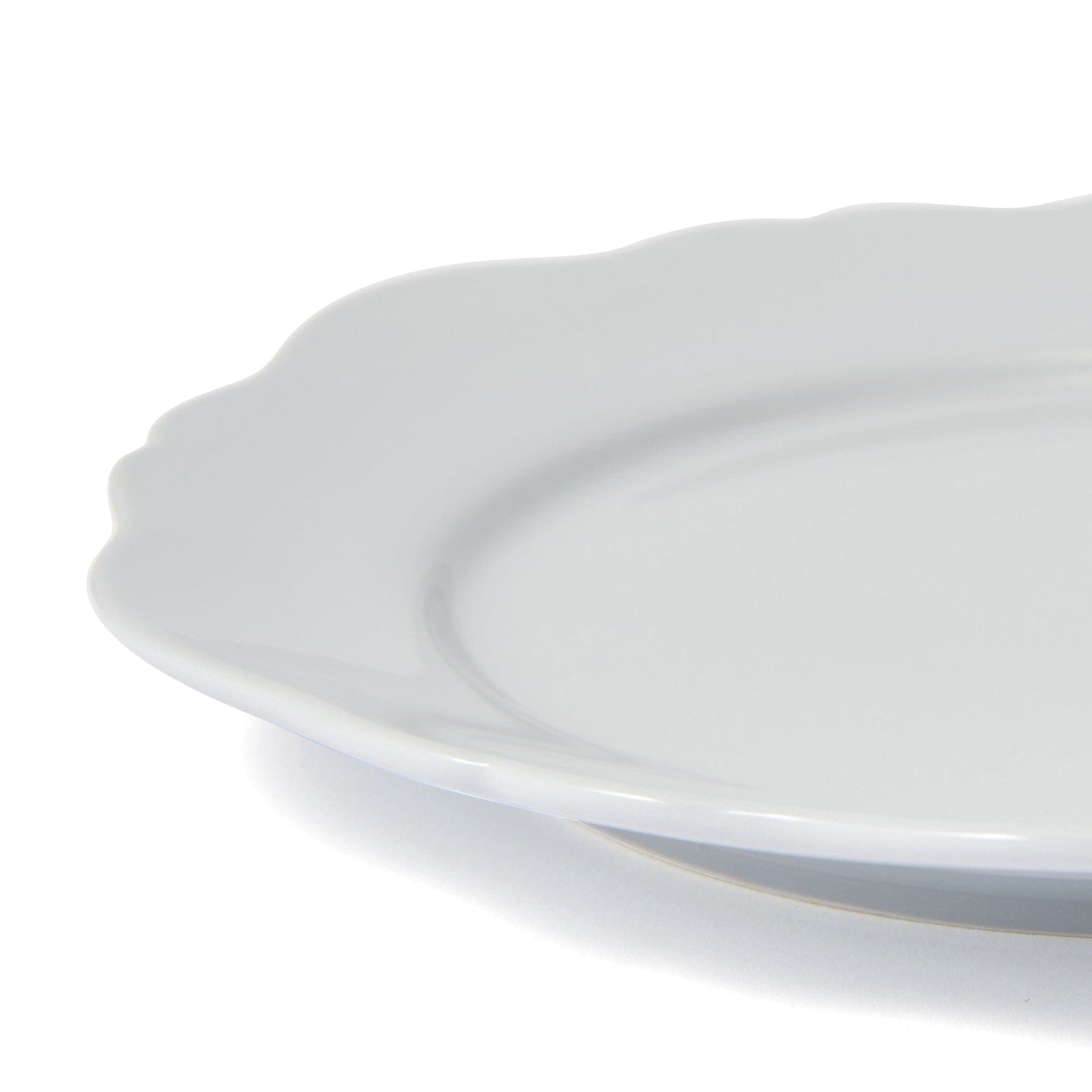 This elegant plate features a soft, scalloped shape that catches the eye.