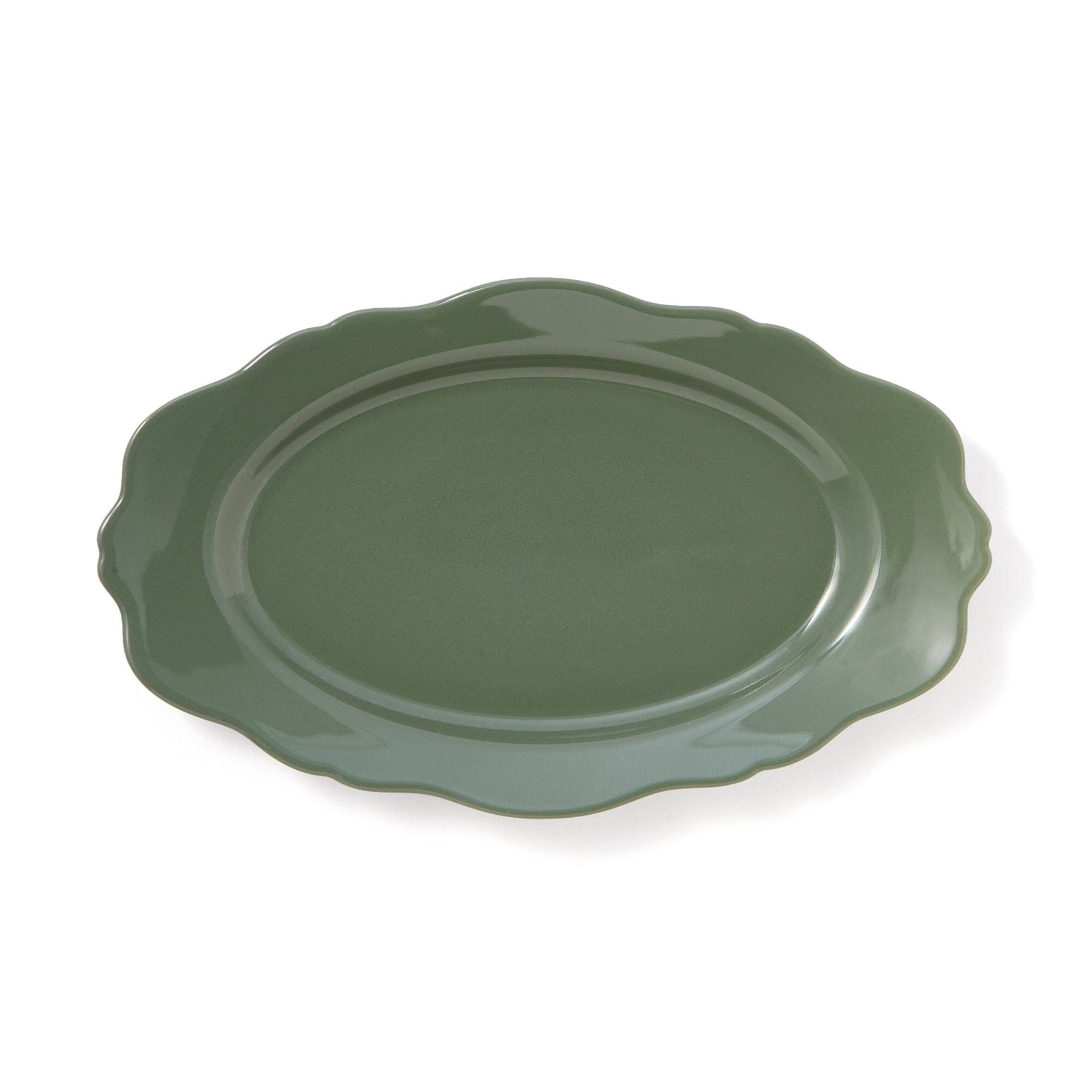 This elegant oval plate features a soft, scalloped shape that catches the eye.