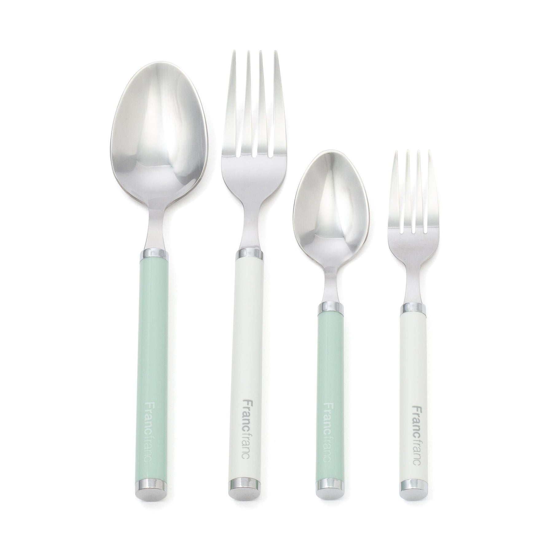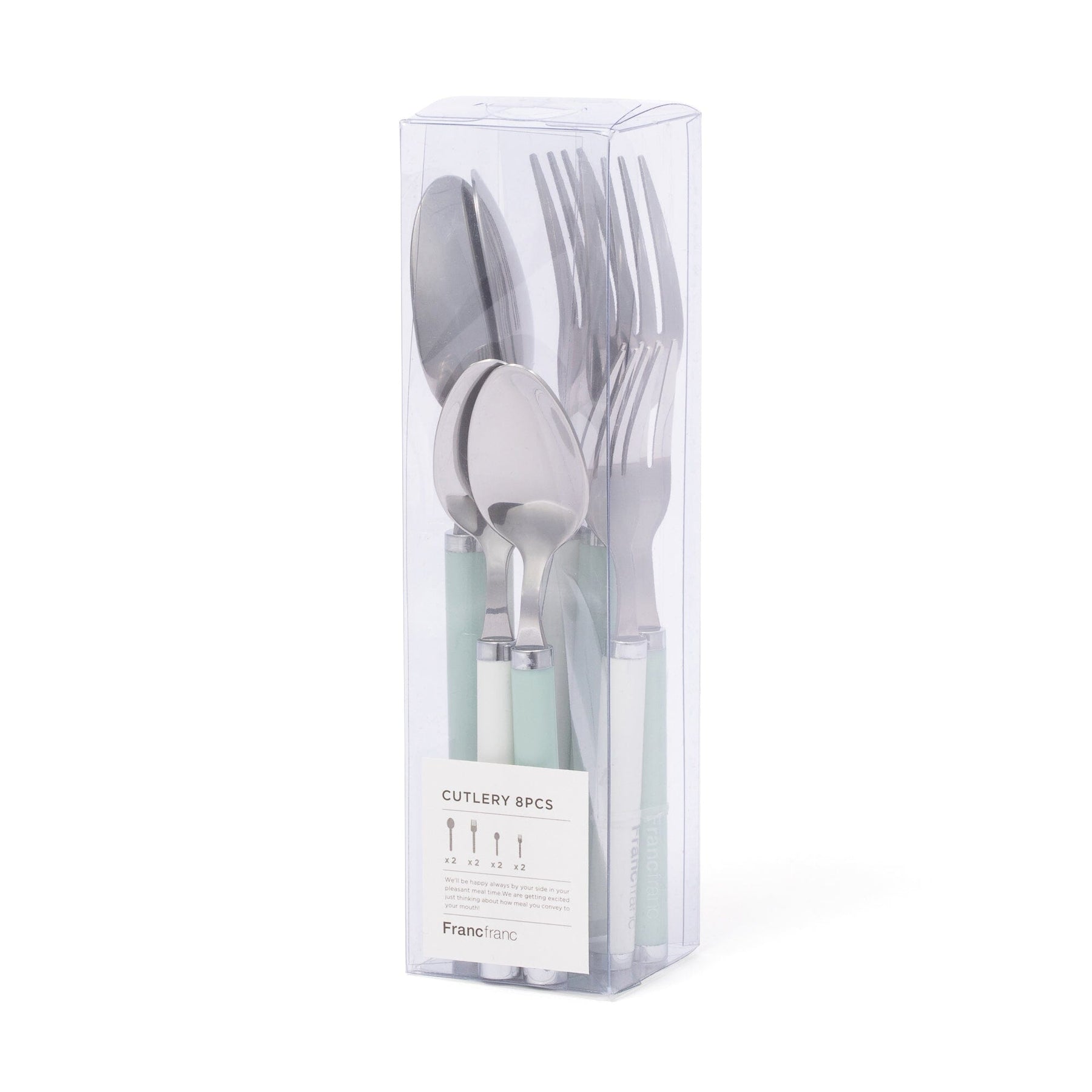 This cutlery set includes two dinner spoons, two forks, two teaspoons, and two cake forks.