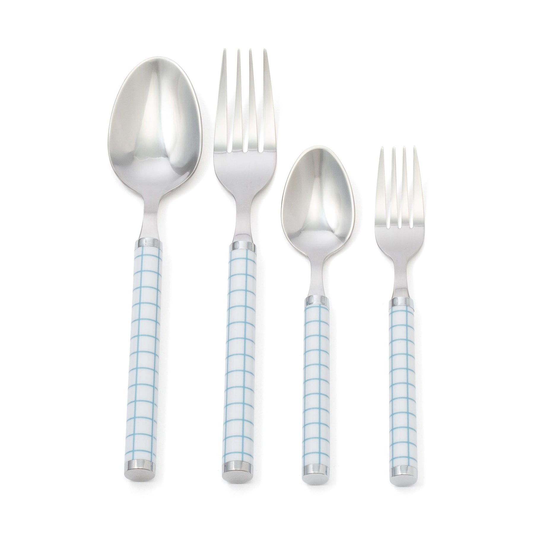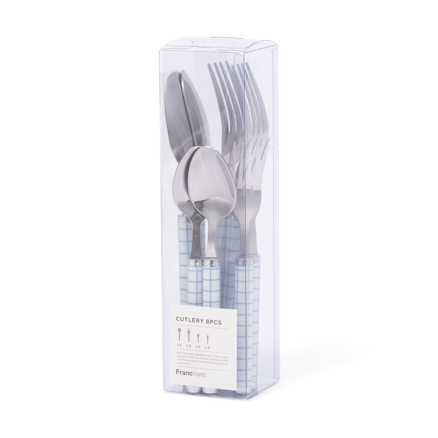 This cutlery set includes two dinner spoons, two forks, two teaspoons, and two cake forks.