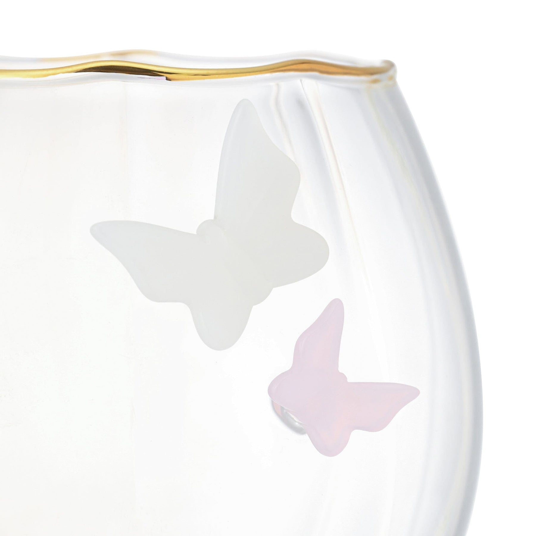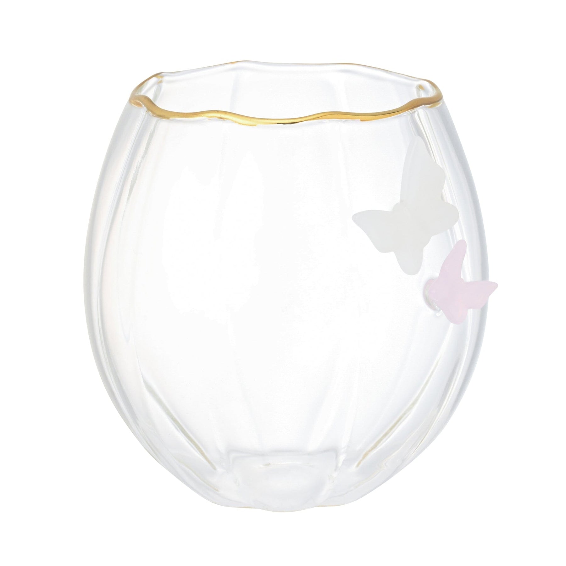 This tumbler is designed to resemble a butterfly perched on a flower-inspired glass.