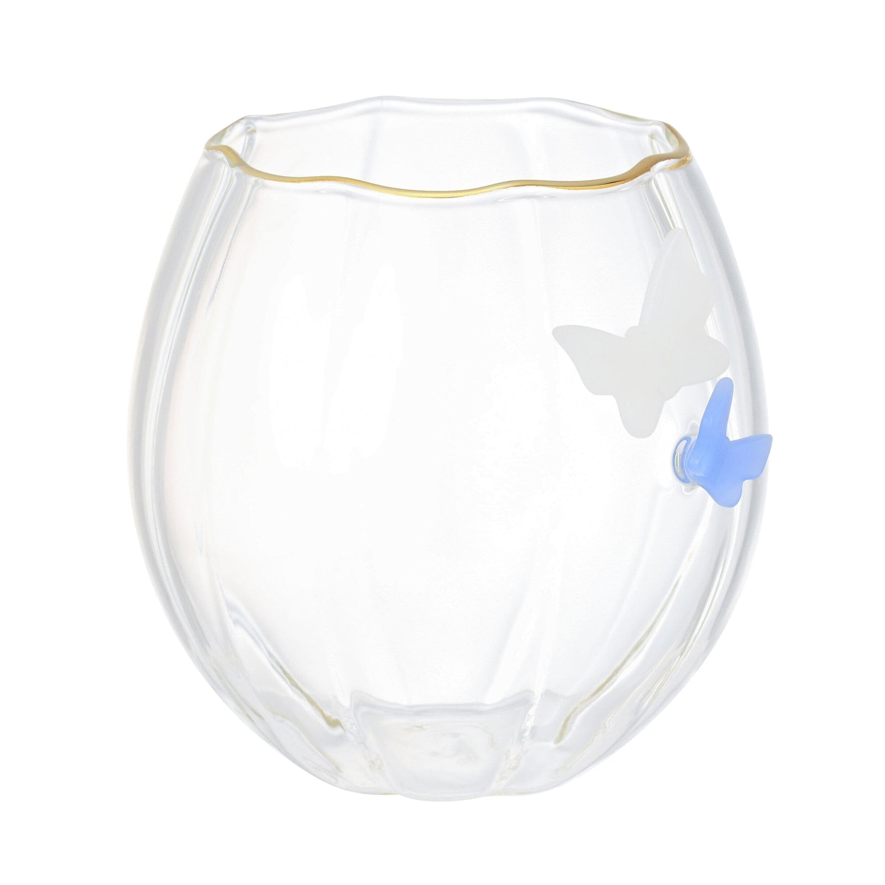 This tumbler is designed to resemble a butterfly perched on a flower-inspired glass.