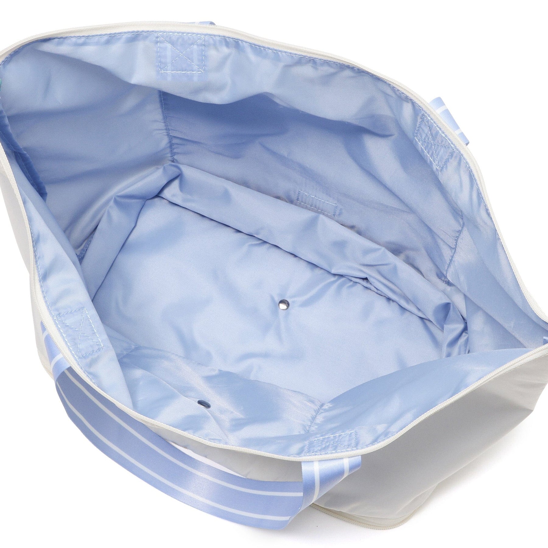 This is a carry-on tote bag with a pocket that fits perfectly on the handle of a carry case.It can be folded compactly when not in use, so if you keep it in your carry case, it will come in handy when your luggage increases.