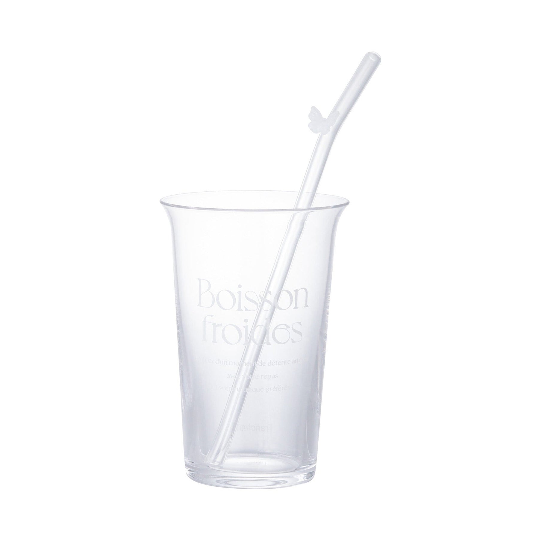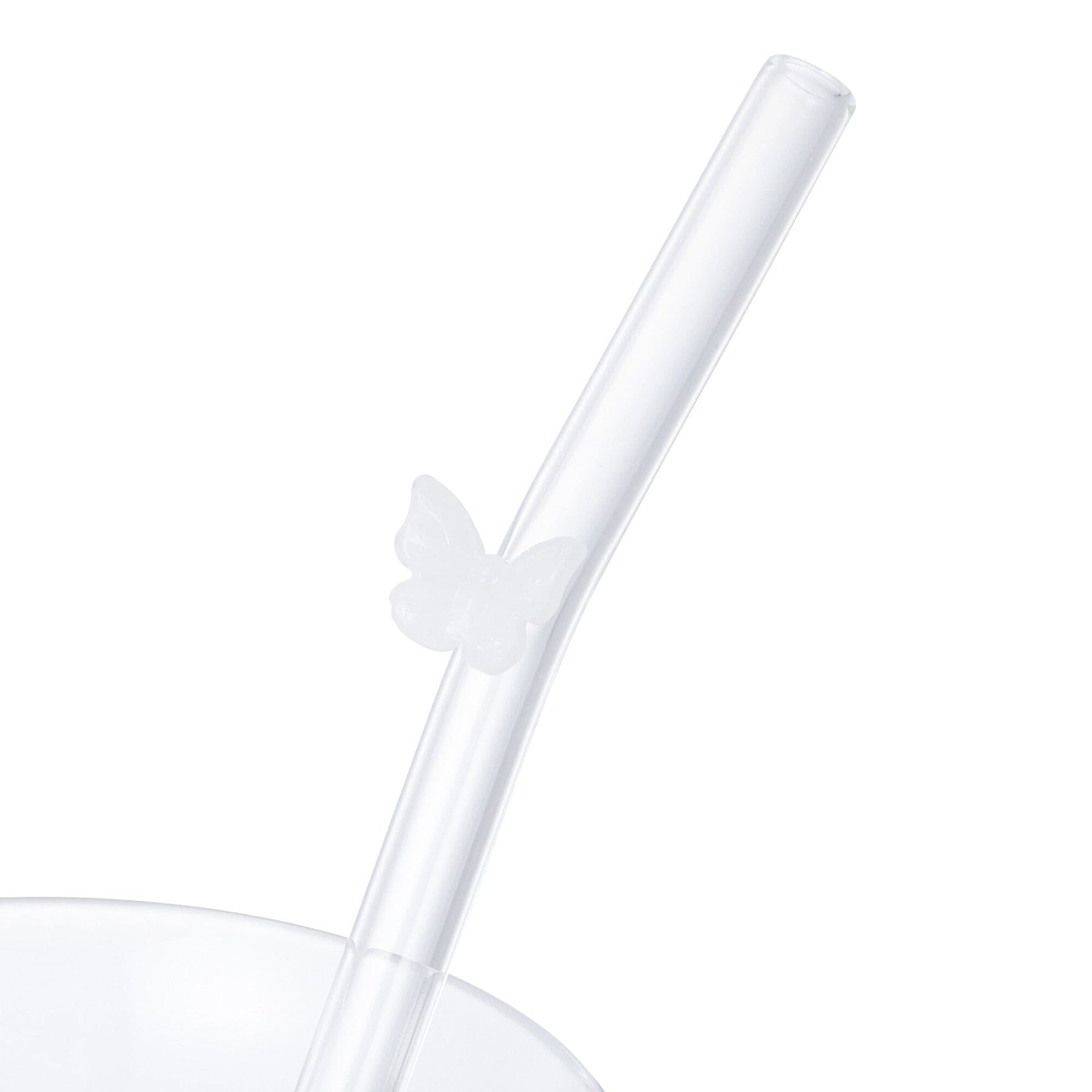 A glass tumbler with a cute butterfly motif and a straw.The photogenic design means you can enjoy a "stunning" home café by pouring your favorite drink into it.