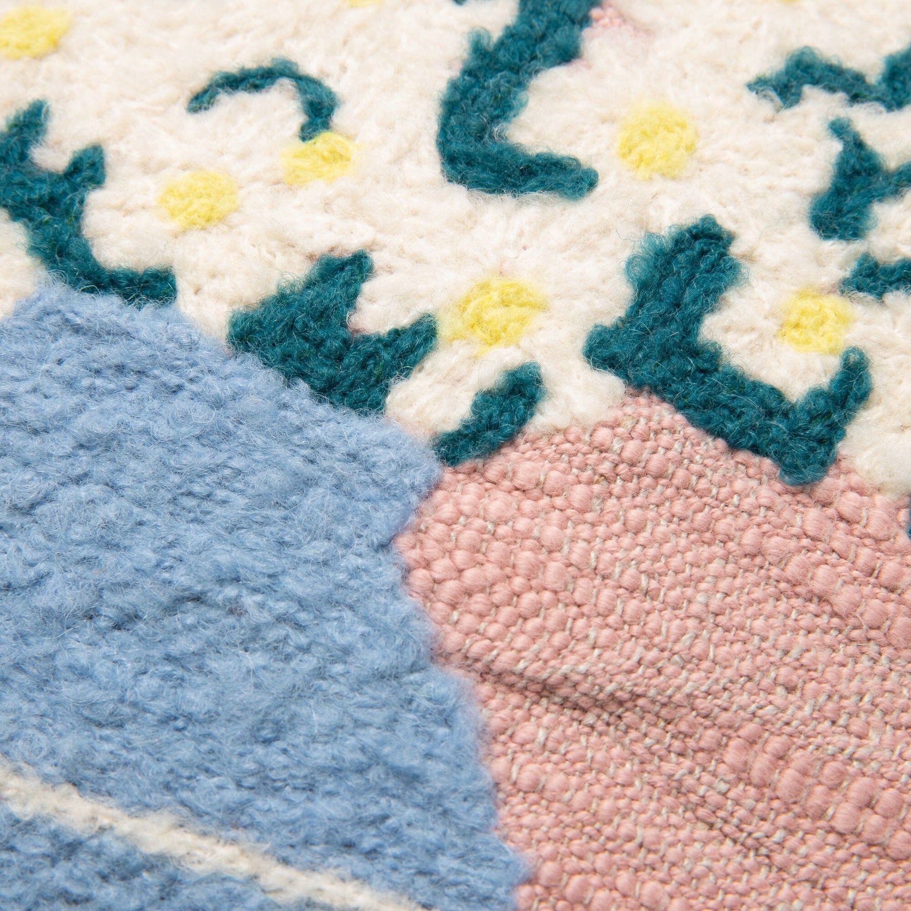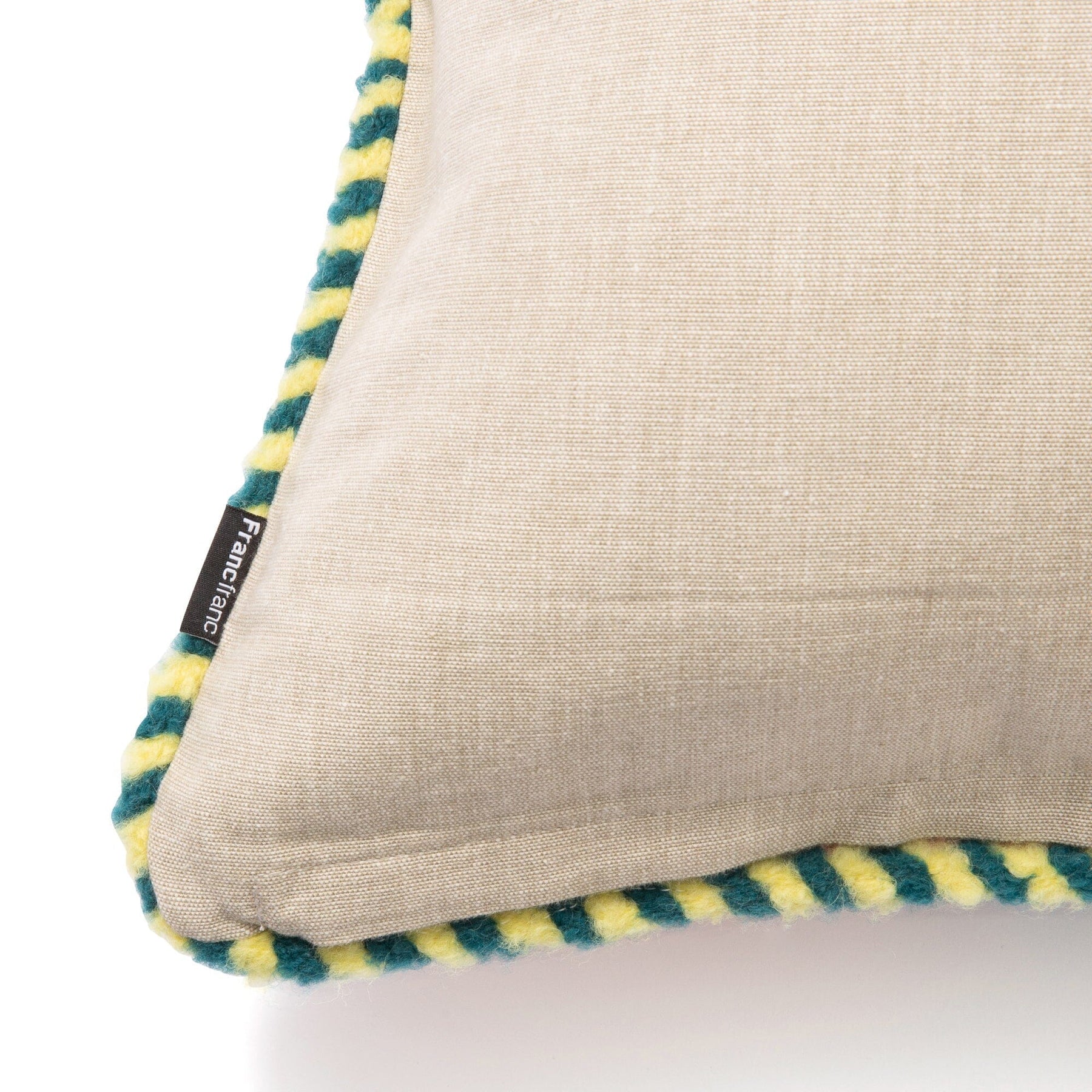 Size: W450×D450×H10mmMaterial: Front: 70% cotton, 30% linen; Embroidery and piping: 75% wool, 15% nylon, 10% acrylic; Back: 100% cotton