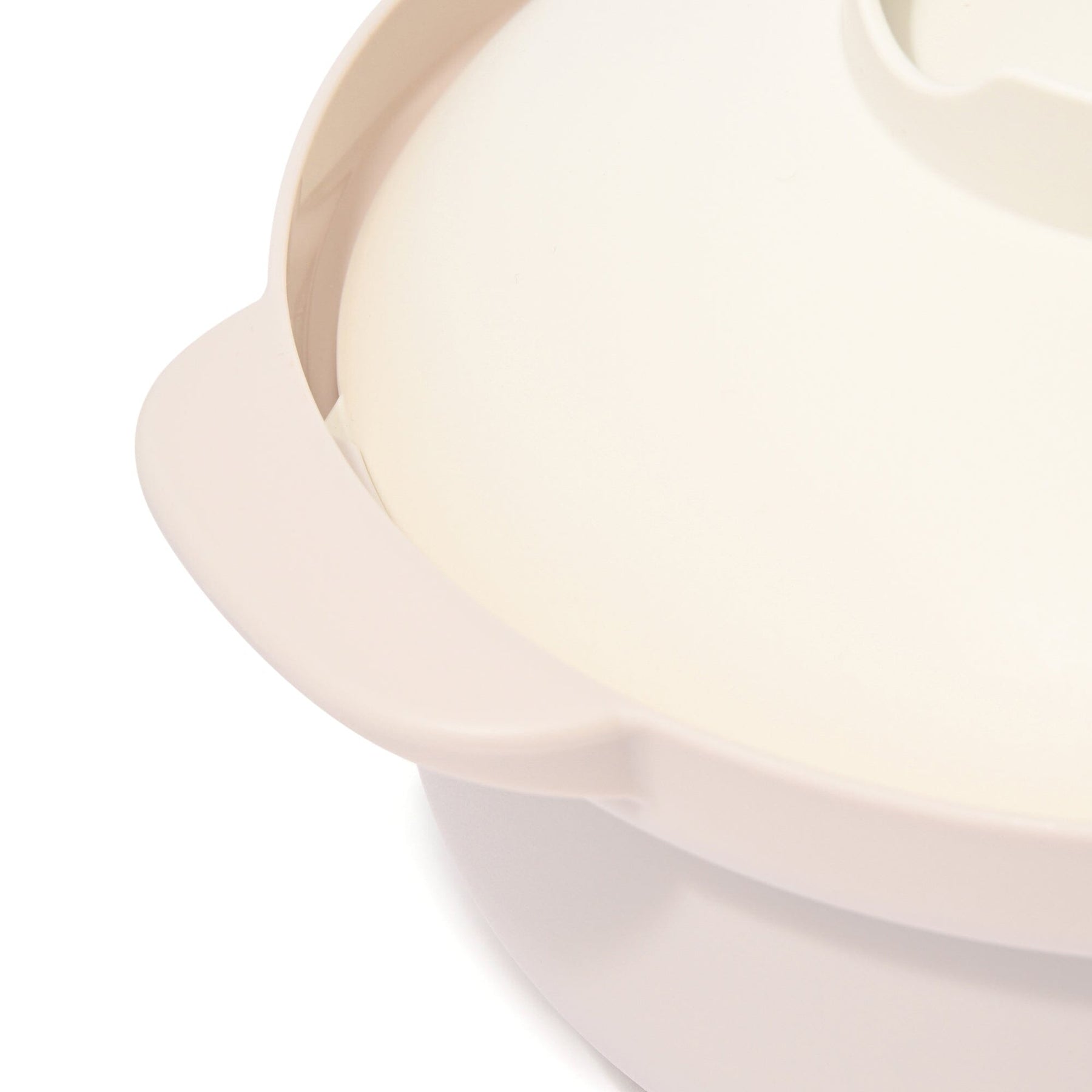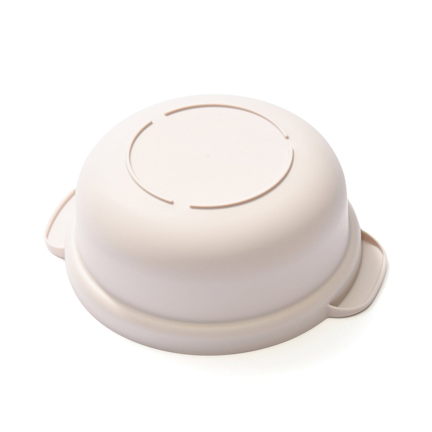 ■When removing from the container, use mitts or other protective gear and always hold the handle with both hands. Do not lift by the lid alone. ■Do not heat foods that are high in oil (curry, stew, fried foods, chicken thighs, etc.), foods with little moisture, or foods that are high in sugar (jam, etc.). This may cause the container to deform. ■Do not use with soy milk, milk, or dairy products as they may boil over. ■Do not heat when there is an extremely small amount of food in the container as it may become too hot and melt the container. ■If you directly put strong-smelling foods or highly pigmented vegetables in the container, an odor may linger or the pigment may stain the resin, but this does not affect the product's usability. ■Never heat the container empty. This may cause the container to deform and melt. ■Never use over an open flame or in an oven. This may cause the container to deform and melt. ■Do not use in the microwave's auto heating or automatic heating functions. Overheating may cause the container to deform. ■Do not heat at temperatures above 800W. ■The estimated heating time for this product is based on 500W. Changing the wattage will change the heating time, so please adjust it while checking the condition of the ingredients.
