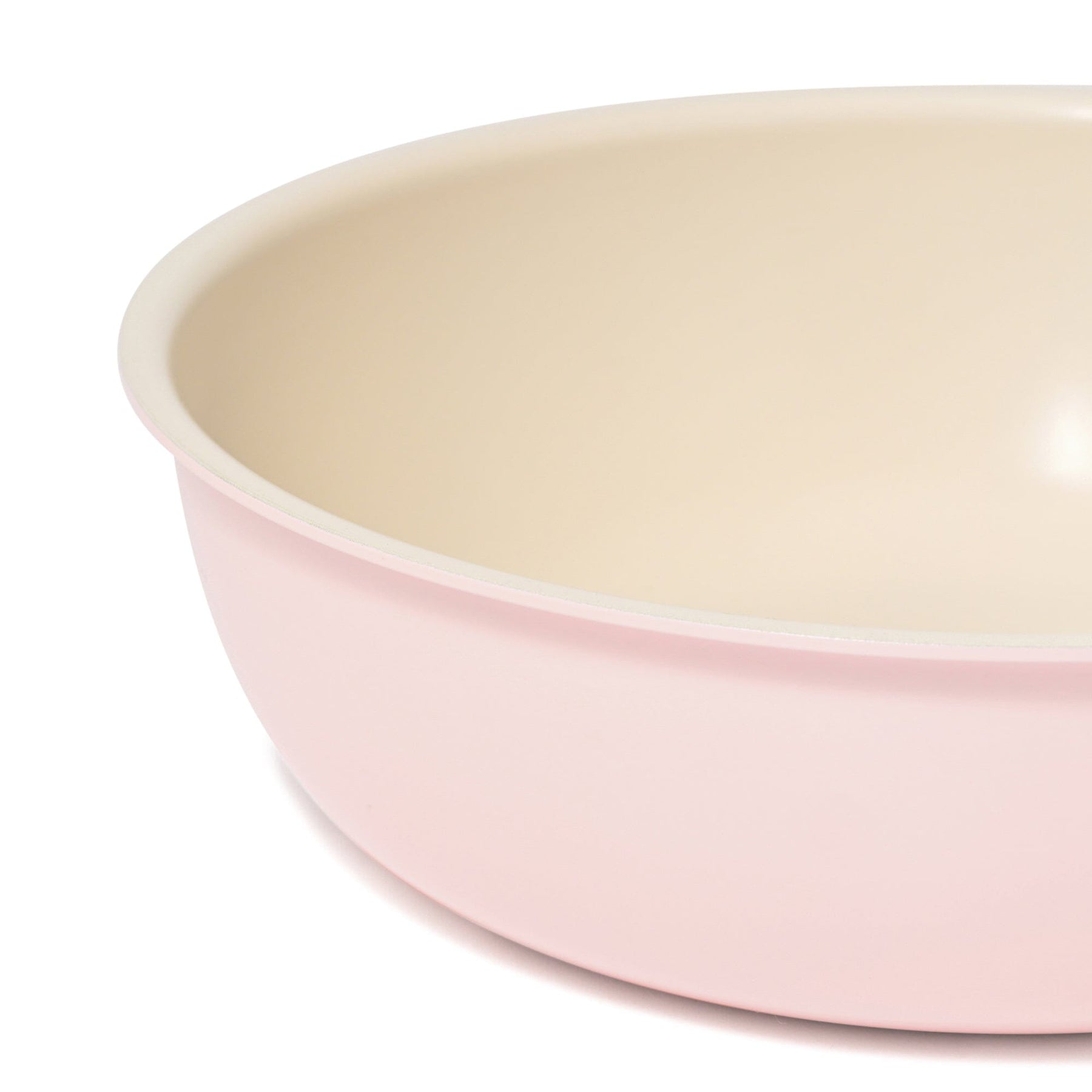This handy 5-piece pot and pan set has detachable handles that allow them to be stacked for storage even in limited space.The cute pink gradation adds fun to your daily meal preparation.