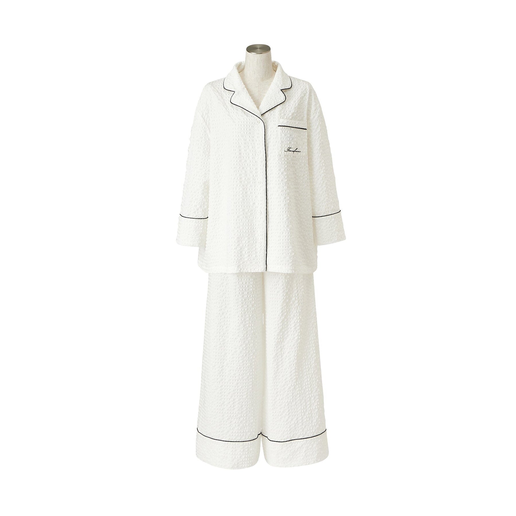 Natural pajamas with embroidered logo.