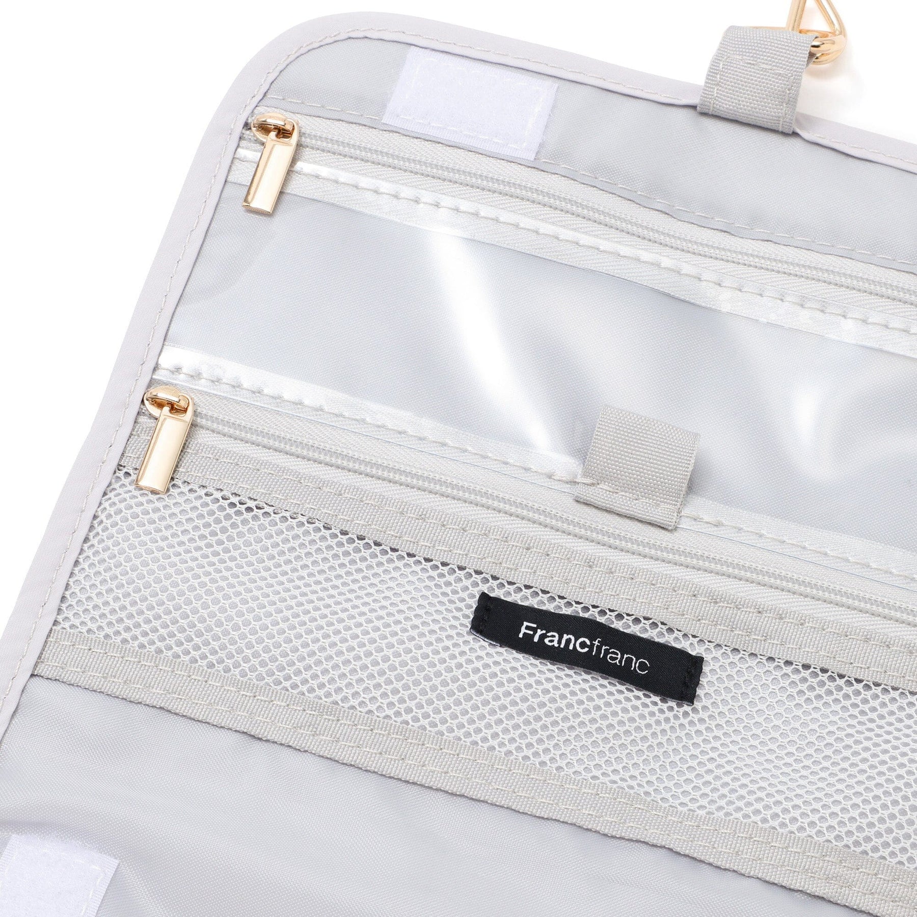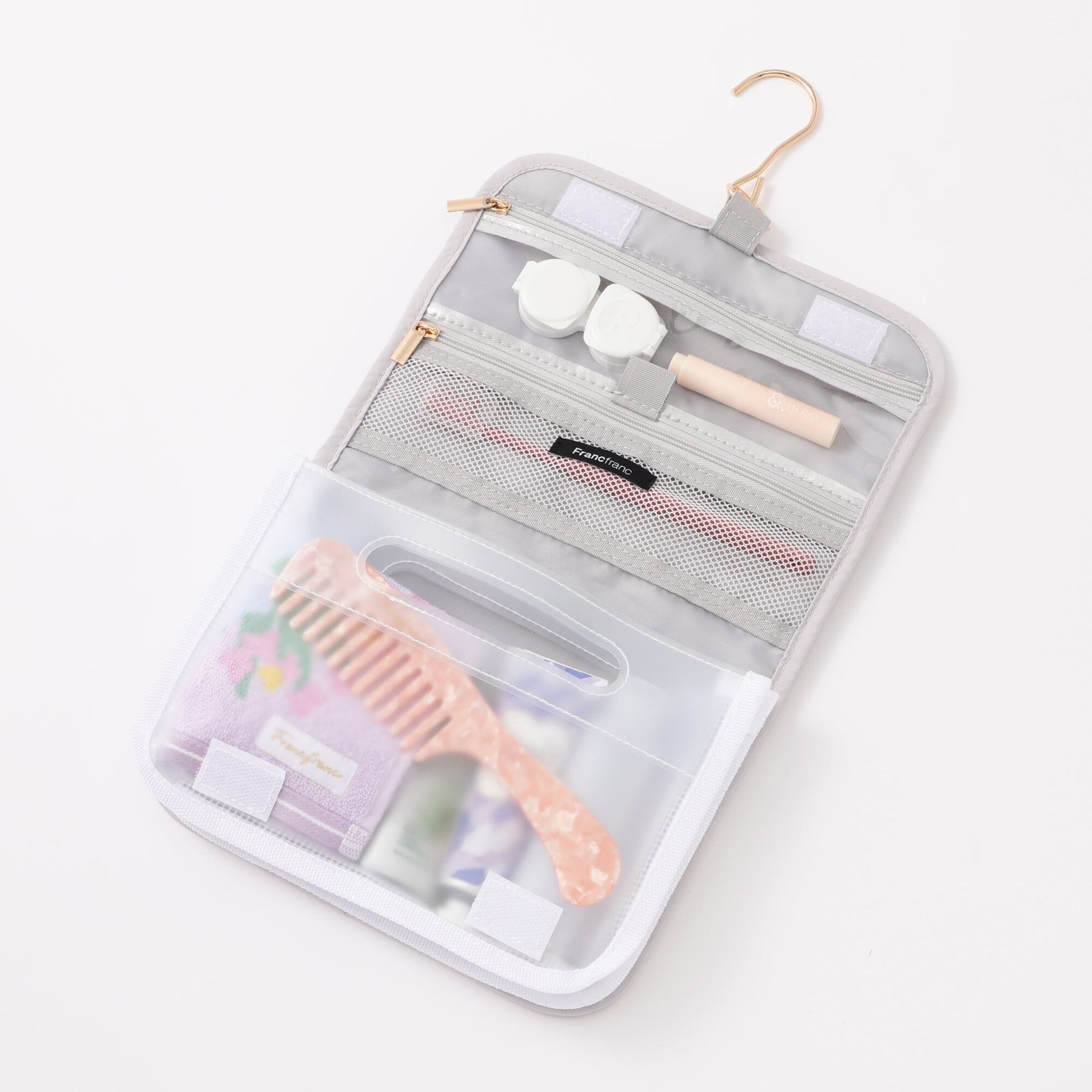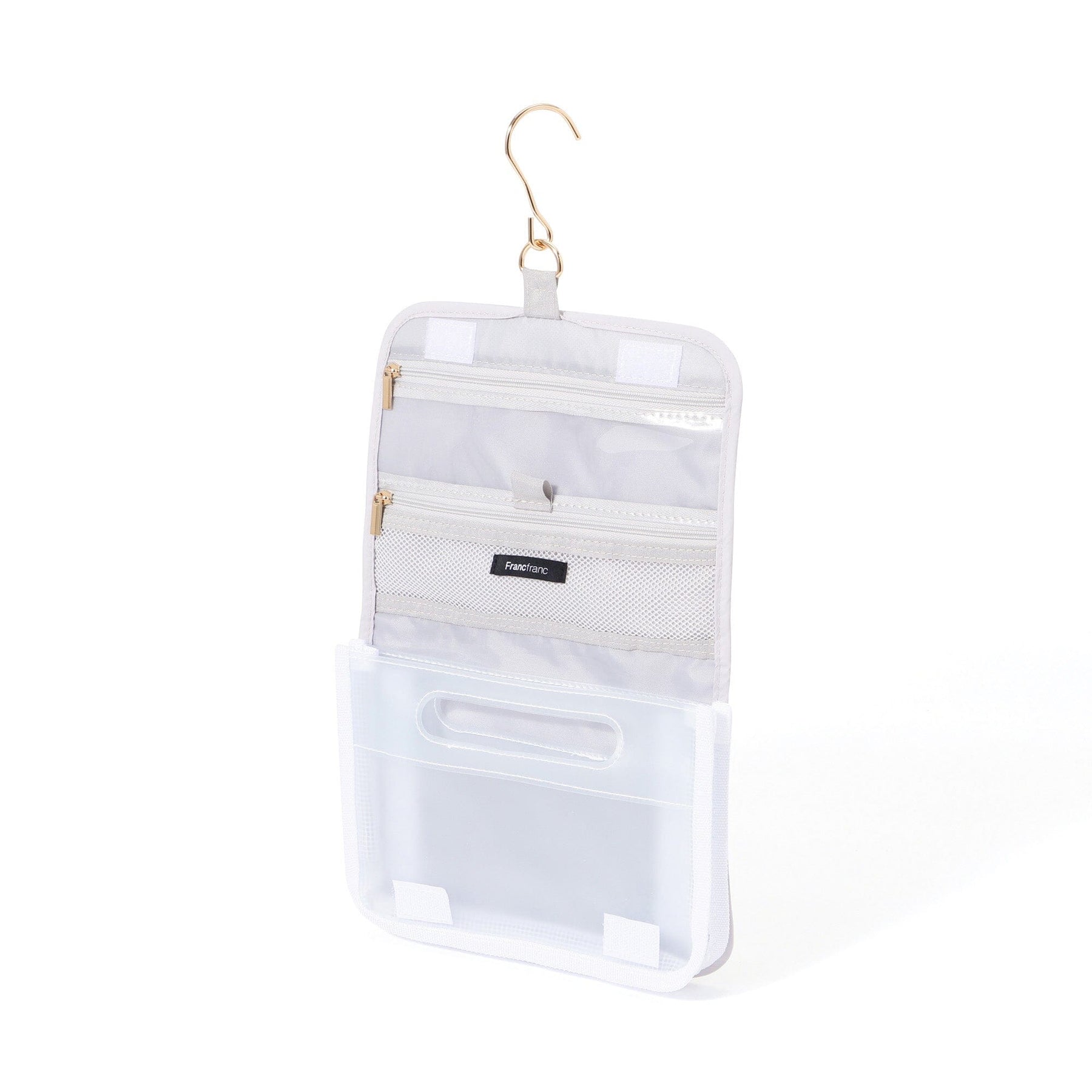 This convenient hanging pouch can be hung on a hanger hook in the bathroom when traveling.The mesh zipper pocket is perfect for storing small items such as cosmetics, toothbrushes, and hairpins.