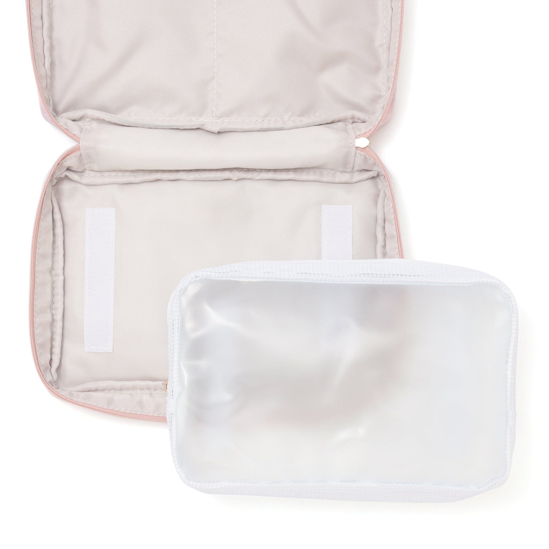 The mesh zipper pocket is perfect for storing small items like cosmetics, toothbrushes, and hairpins.