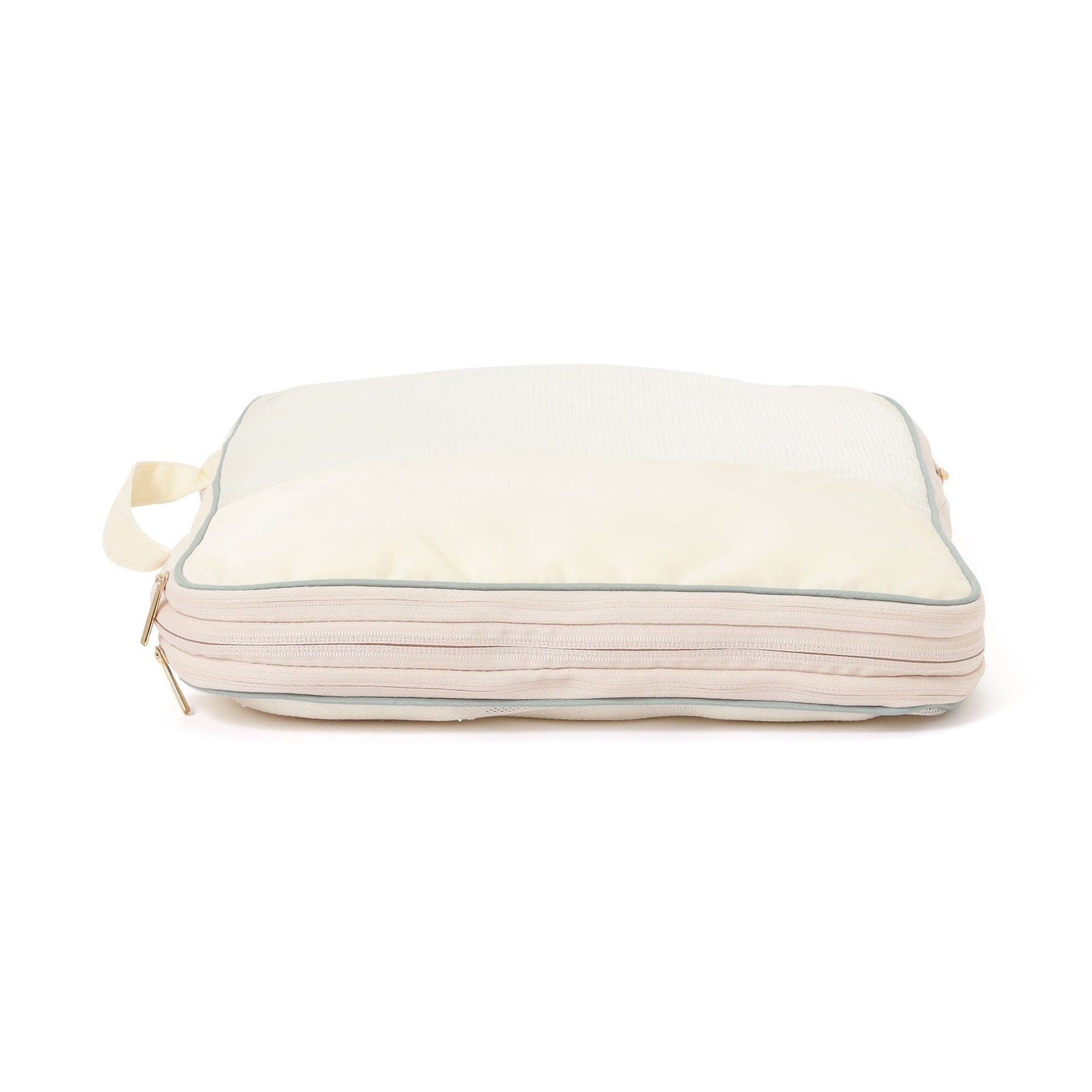 This storage item compacts your clothes.Simply close the zipper on the outside of the organizer one and a half times to compress the clothes inside.
