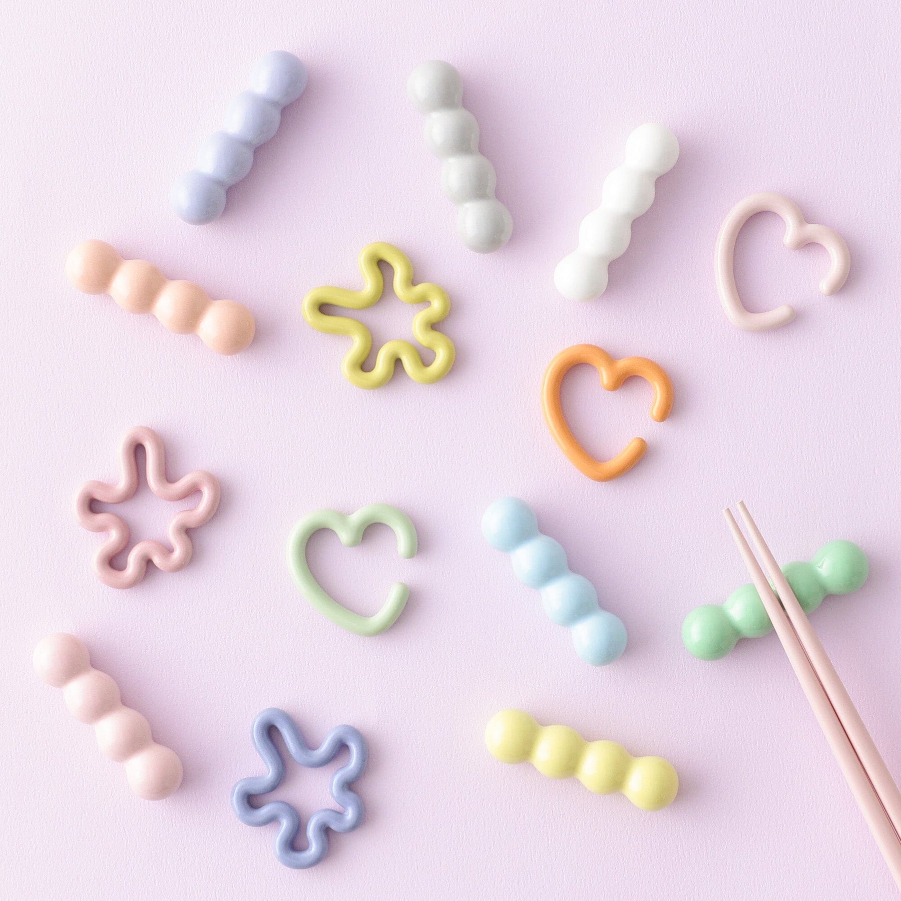 A chopstick rest with a wavy flower motif.The bumpy parts of the flower allow you to place your chopsticks on them for stability.