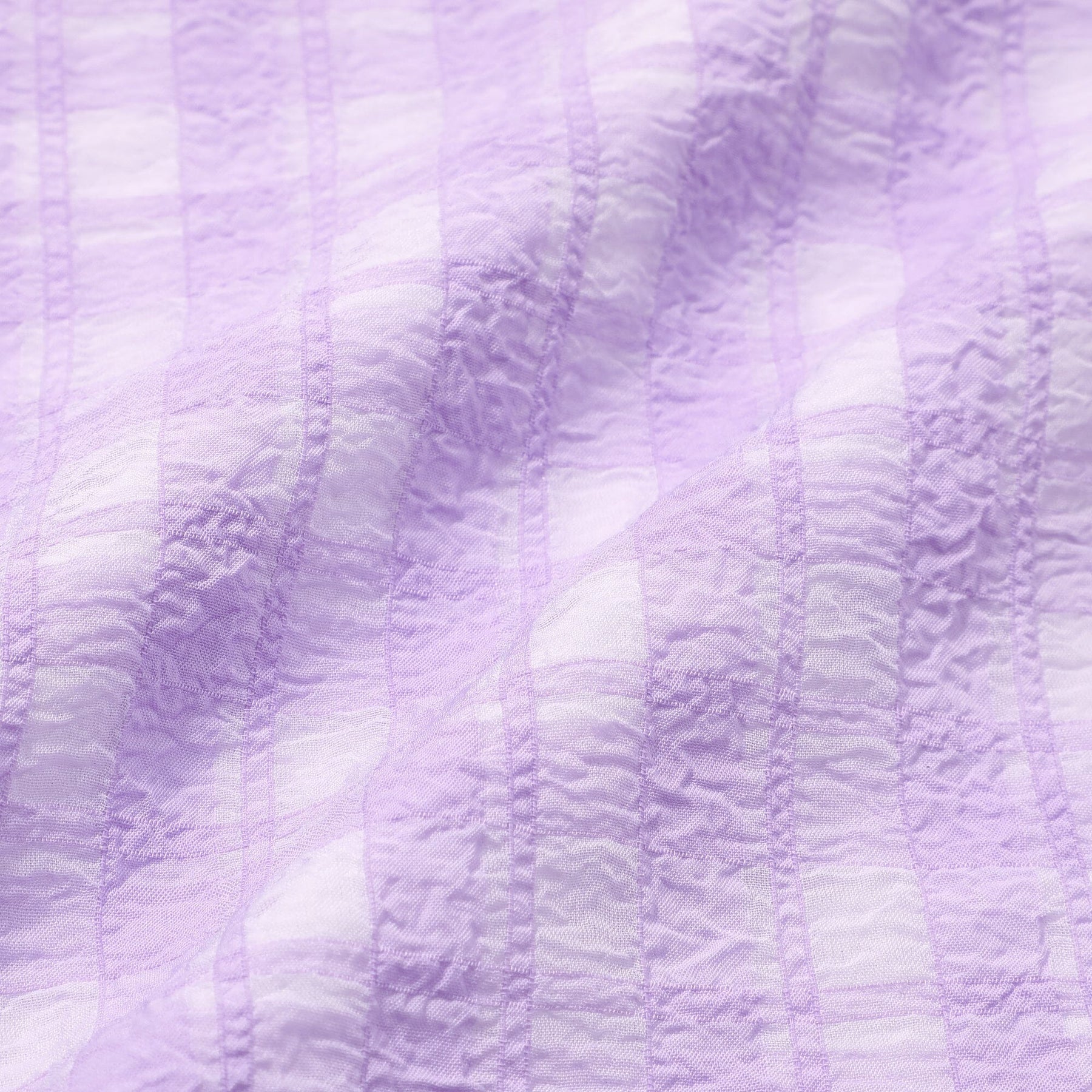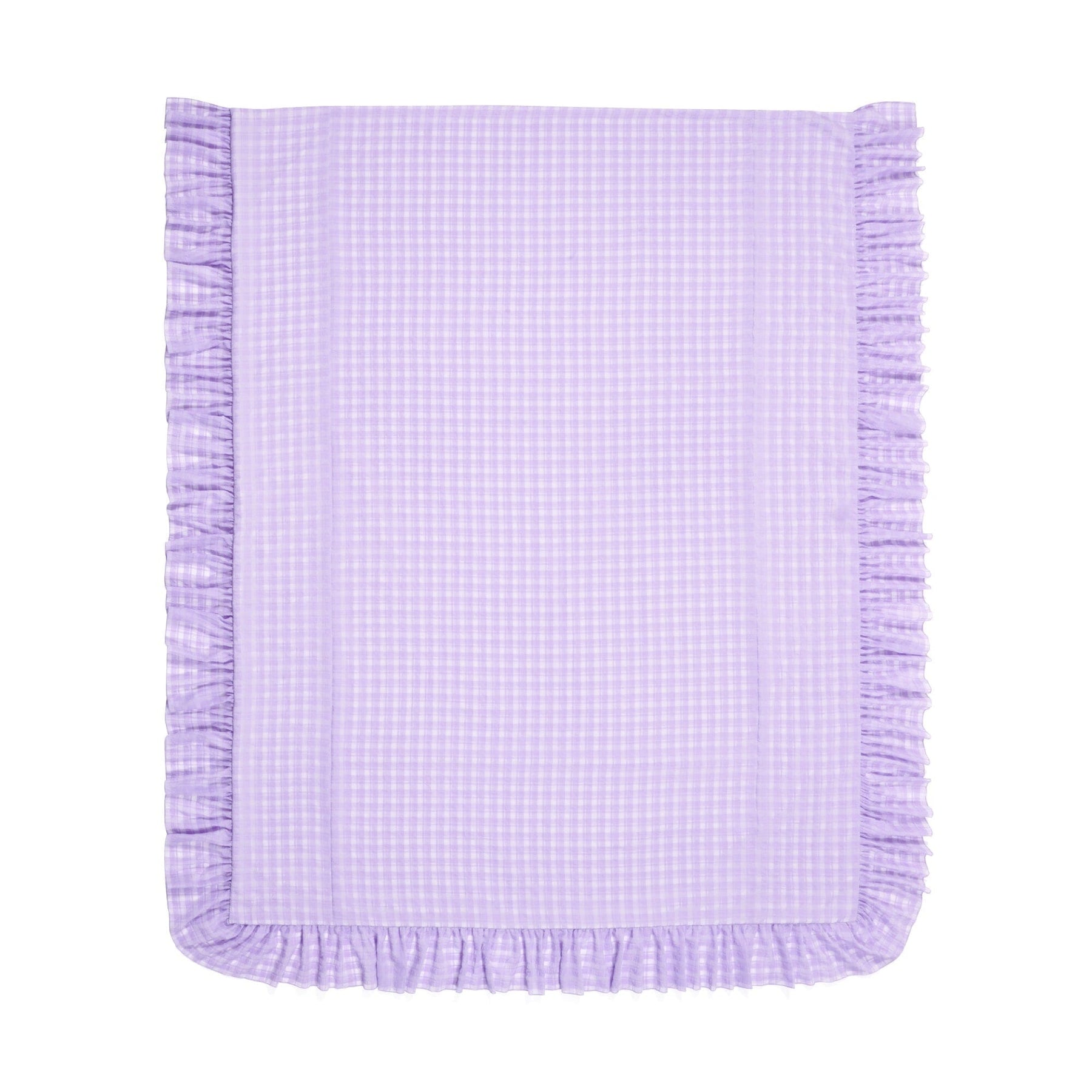 A duvet cover with a vibrant, trendy purple that enhances its charm.The woven check pattern subtly asserts individuality, and the light, thin fabric further enhances the cute frills around it.