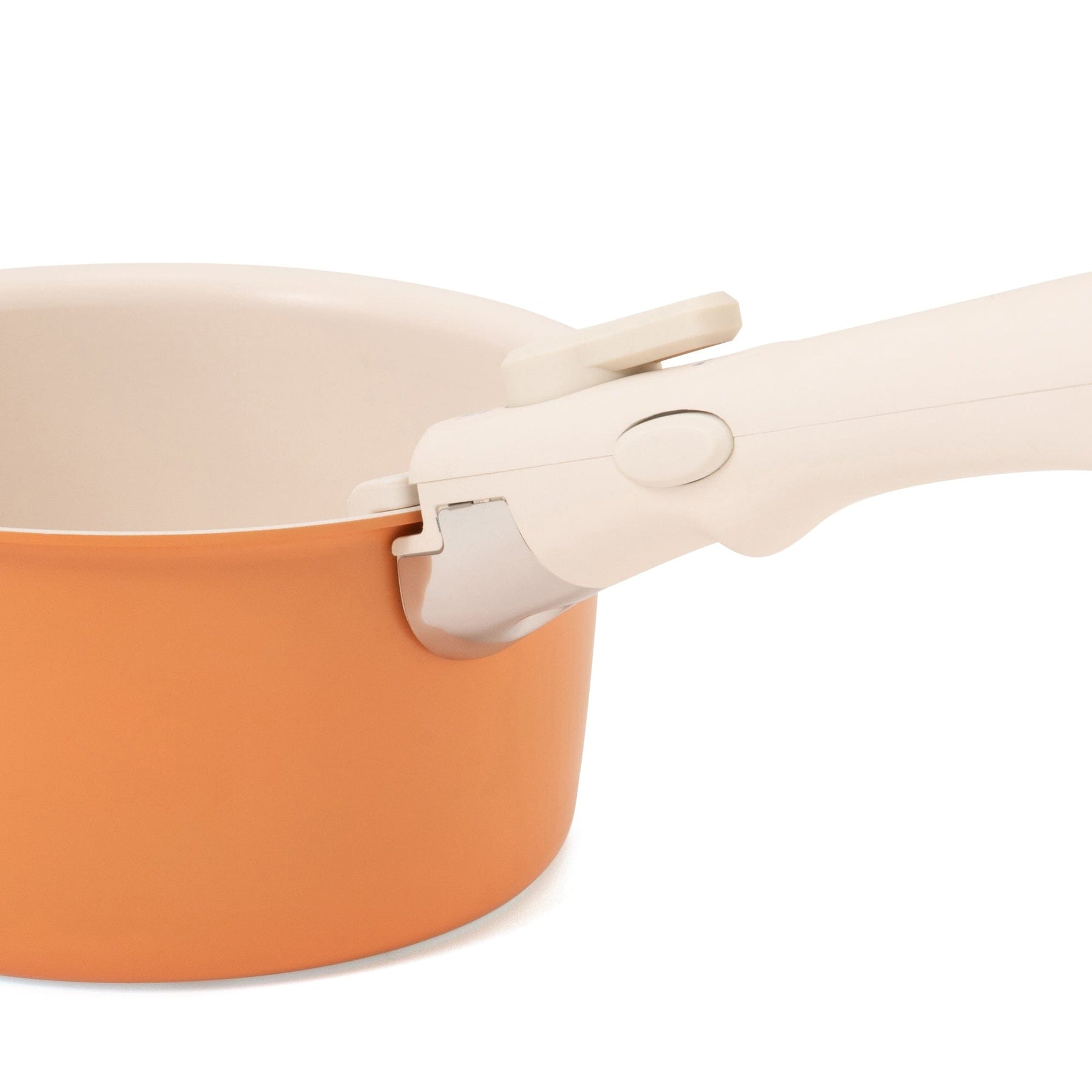 By removing the handles, the pots and pans can be stacked and stored compactly. Another attractive feature is that you can serve hot food on the table, reducing the amount of dishes to wash.