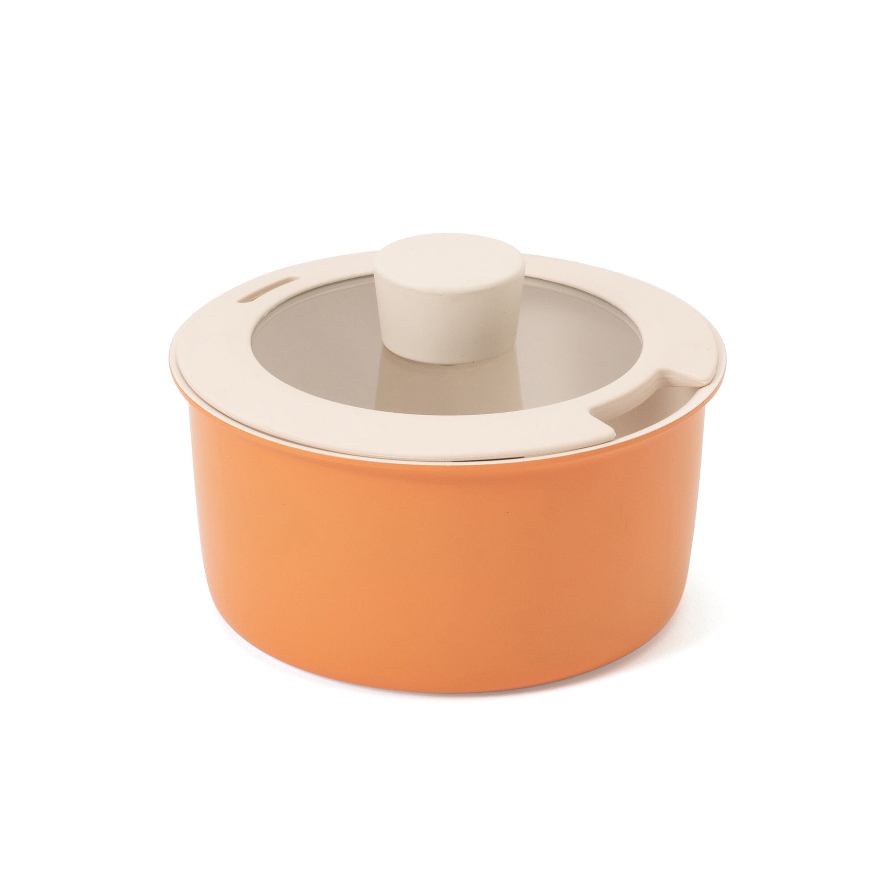 Material: Body: Aluminum alloy, Bottom: Stainless steel, Body surface treatment: Inner surface: Fluorine resin coating, Outer surface: Baked coating, Glass lid with silicone rubber (for 16cm/24cm) Body: Glass and silicone rubber, Knob: Phenol resin, Gasket: Silicone rubber, Handle resin part: Nylon, Gasket: Silicone rubber, Metal part: Stainless steel