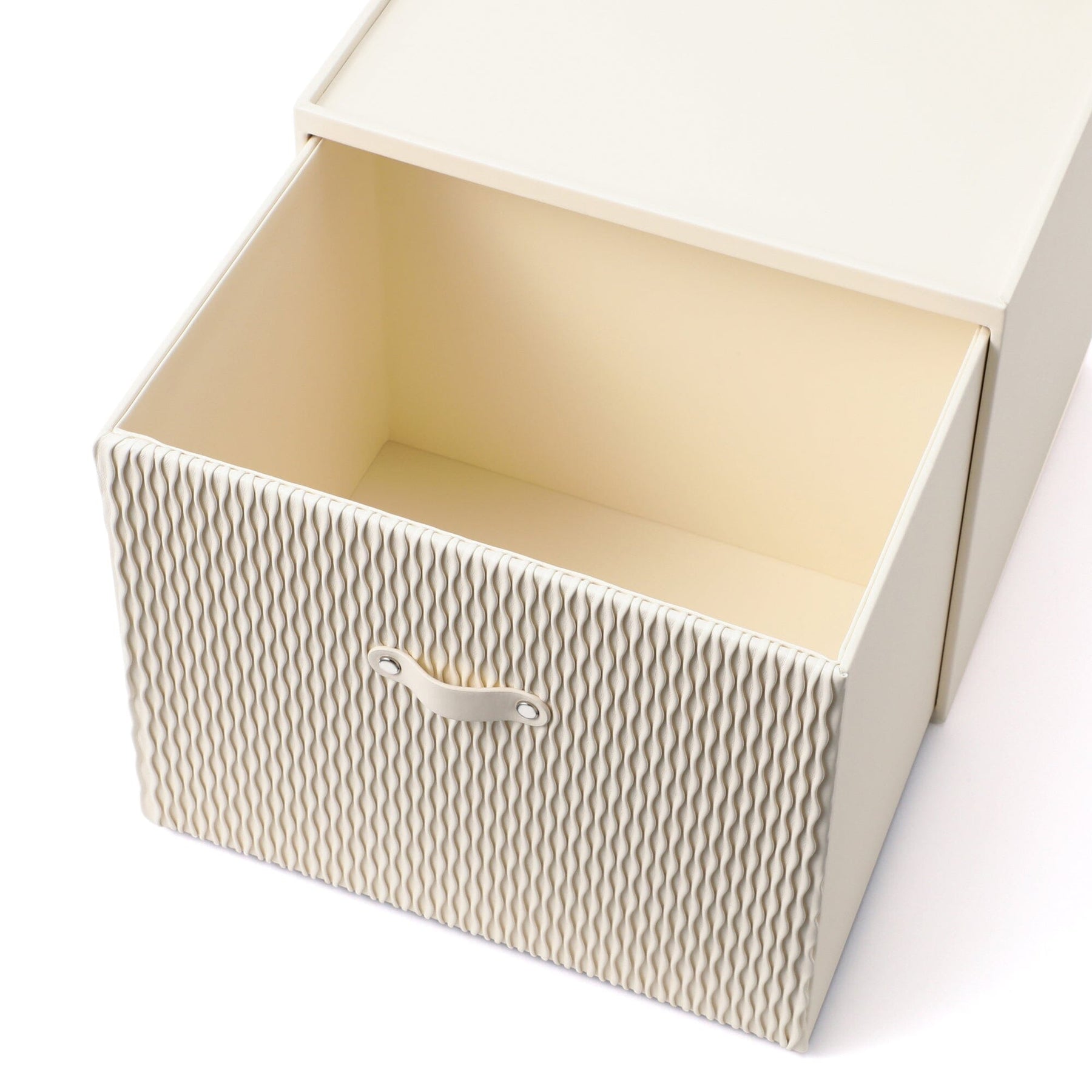 A stackable drawer-type storage box.The surface texture is distinctive and the design will accentuate your interior.