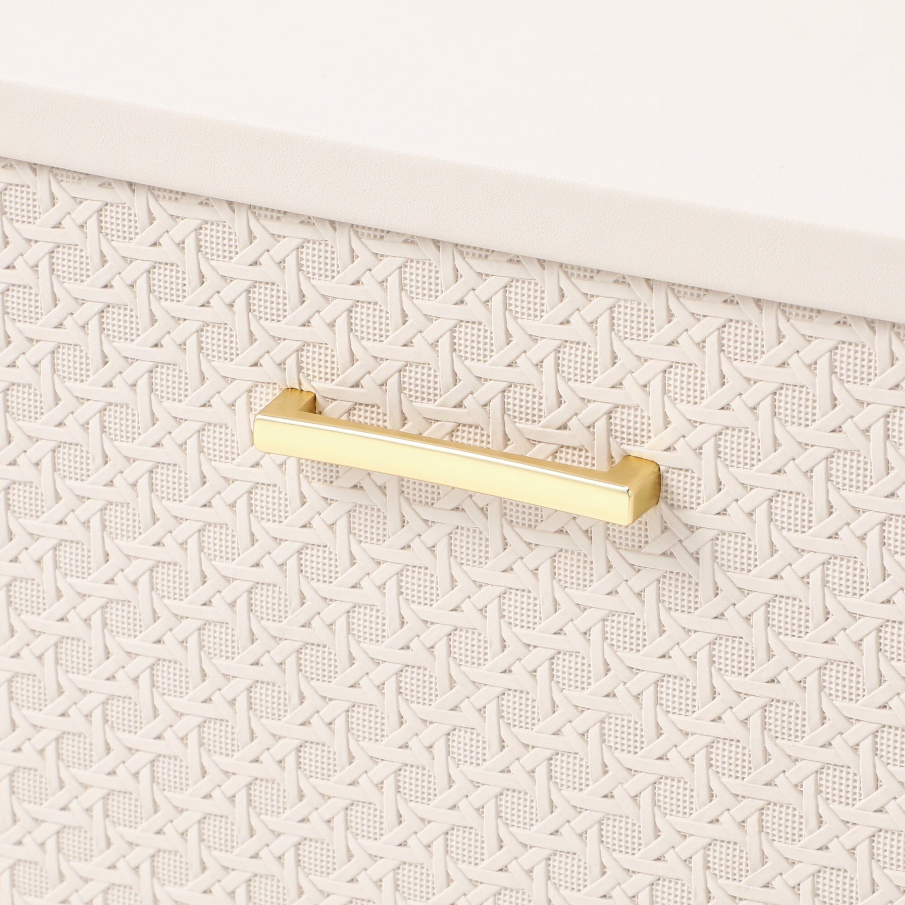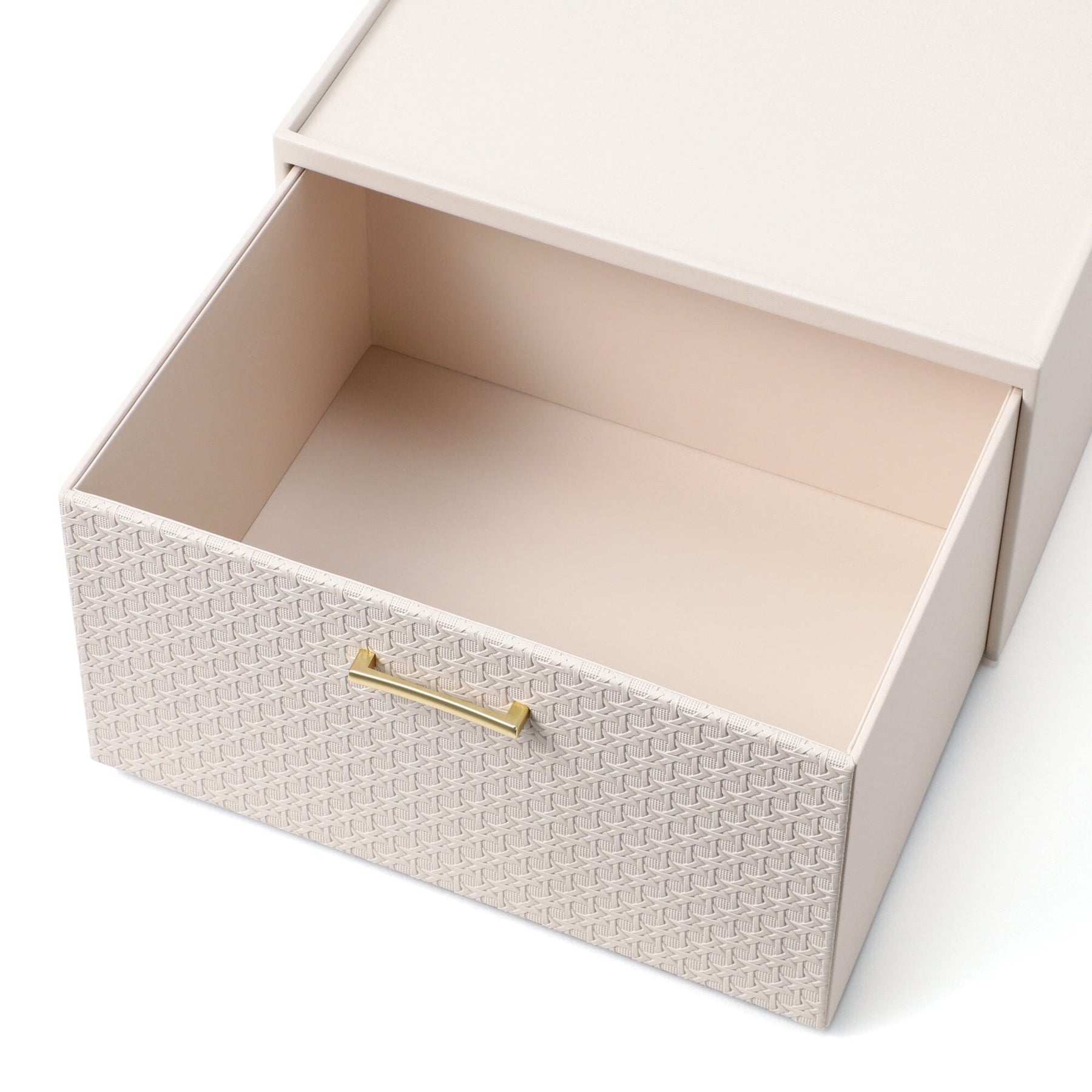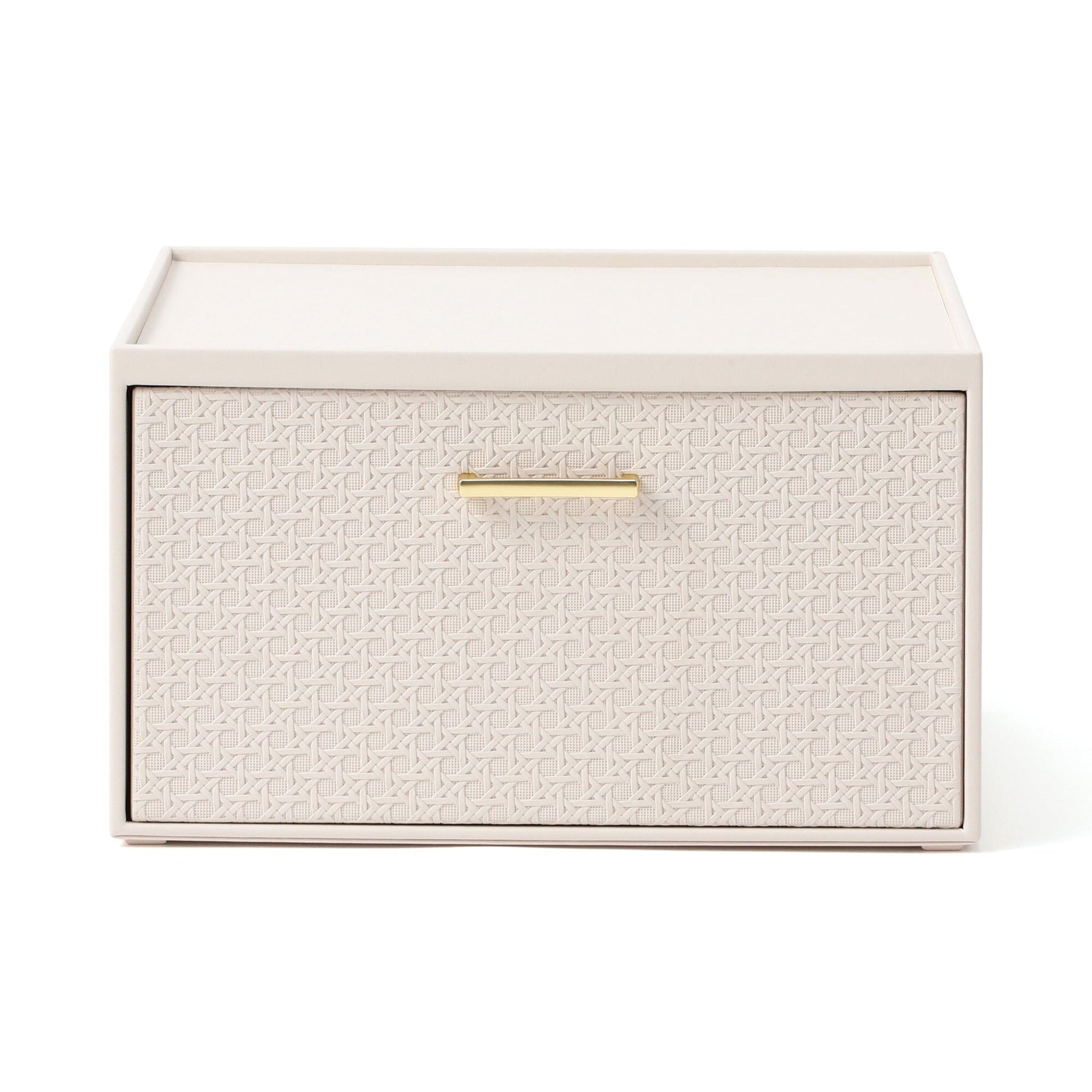 A stackable drawer-type storage box.The surface texture is distinctive and the design will accentuate your interior.