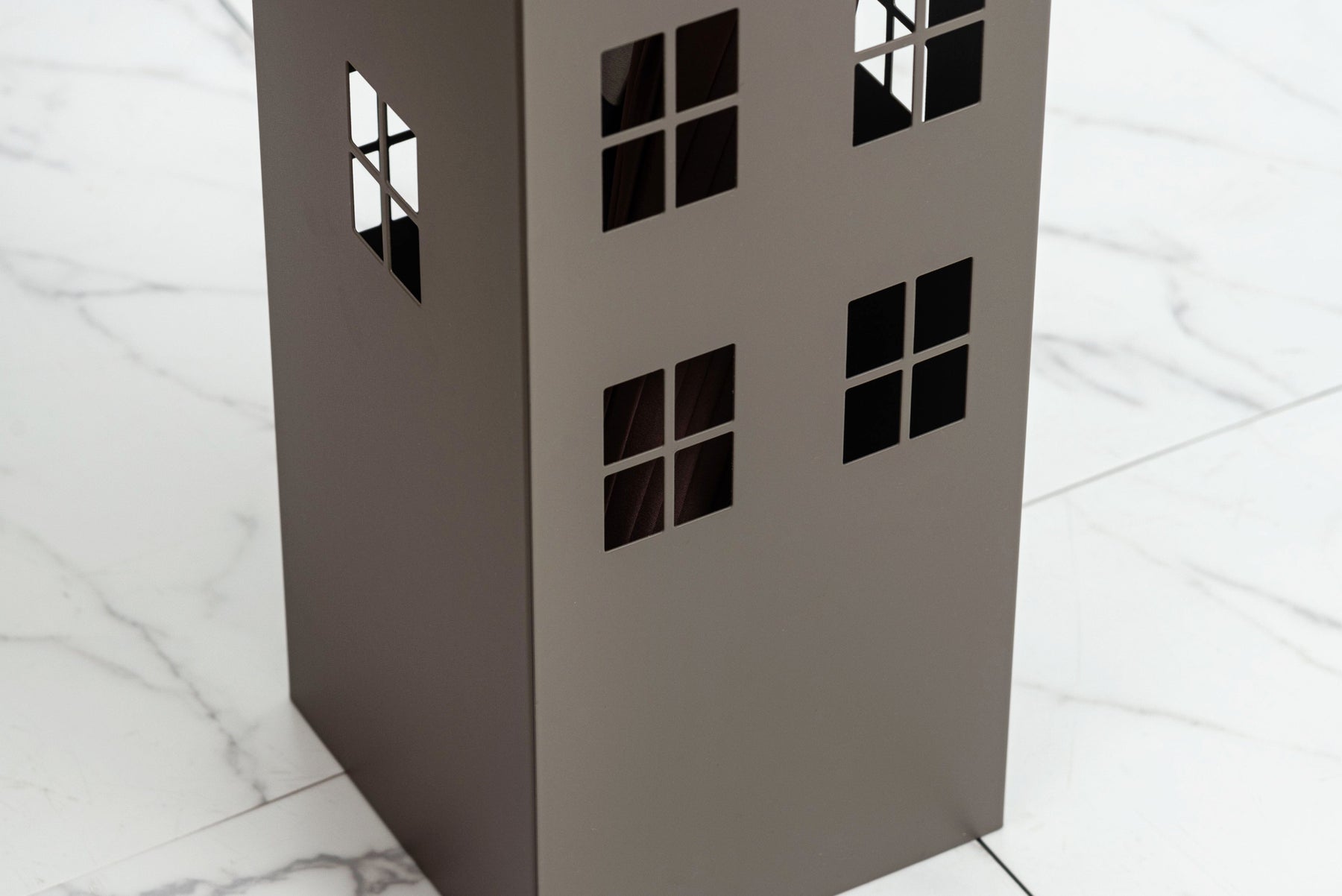 ■A steel umbrella stand with a simple design that fits neatly. ■It's slim and doesn't take up much space, making it a great size to fit in small spaces. ■The main body has a cute, object d'art design, with a die-cut house shape and a window cutout design. ■Made of powder-coated steel, it is rust-resistant and durable. ■At approximately 2kg, the main body is sturdy and stable, yet easy to move. ■It comes with a removable drip tray that prevents rainwater dripping from umbrellas from leaking out. ■In addition to being an umbrella stand, it can also be used for a wide range of purposes, such as storing plants or long items.