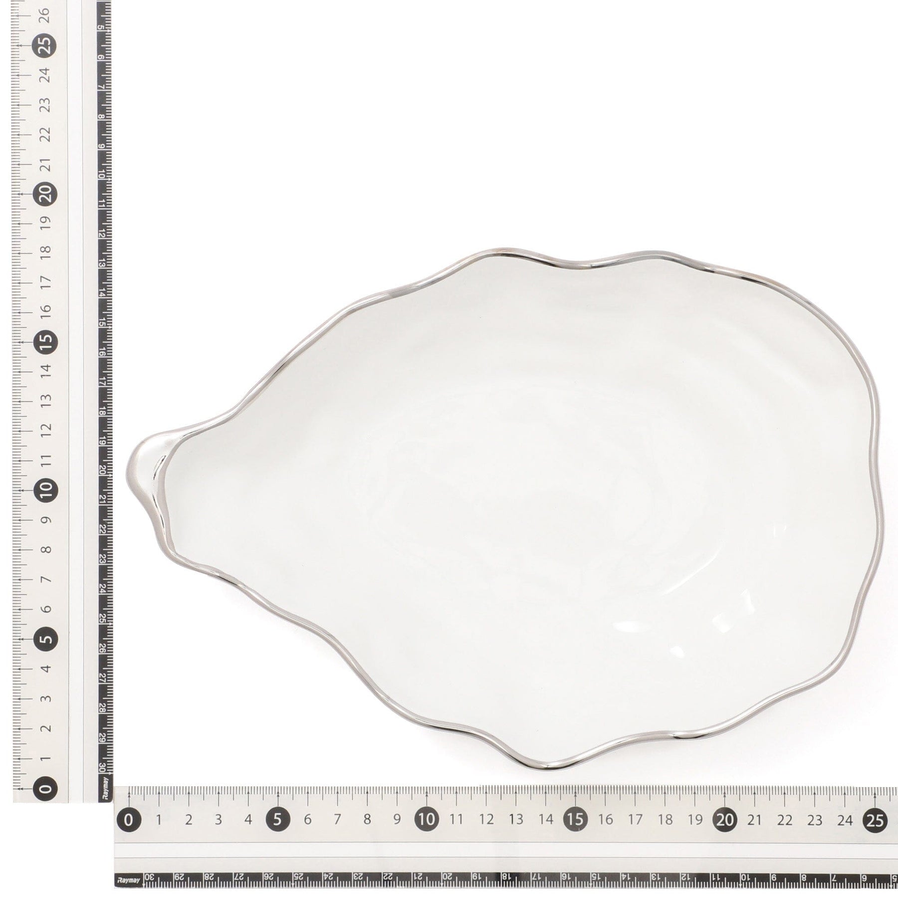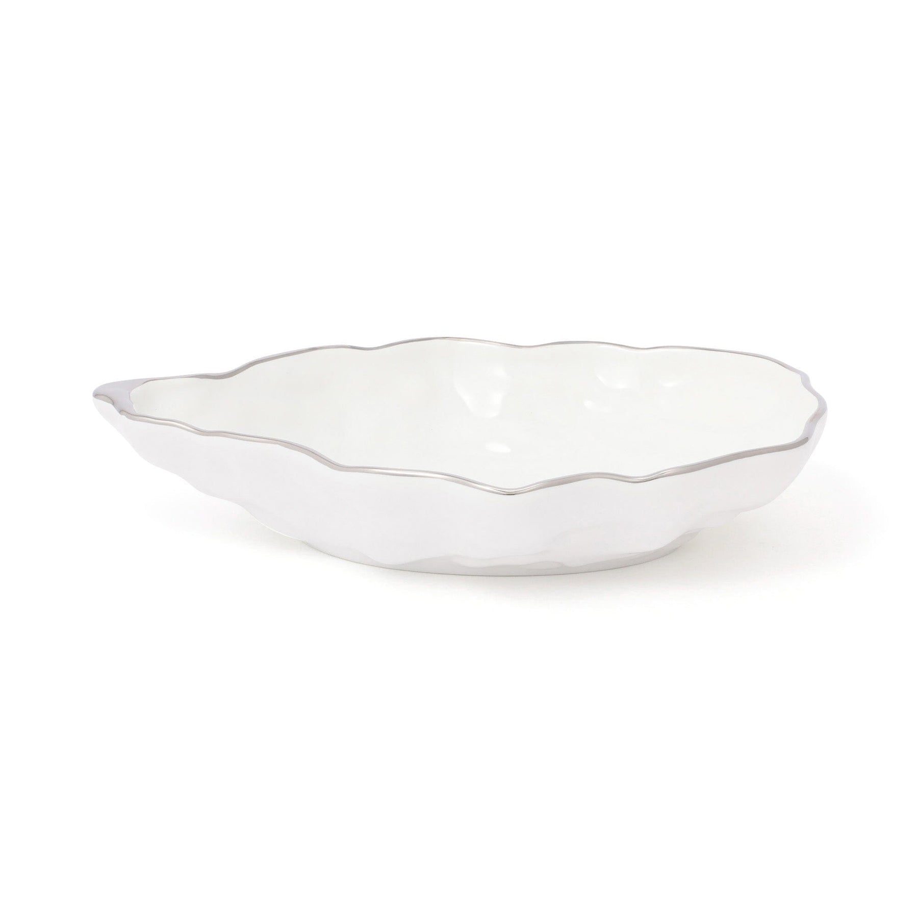 The intentionally uneven design creates a realistic shell shape. The silver accents on the rim add a touch of elegance.