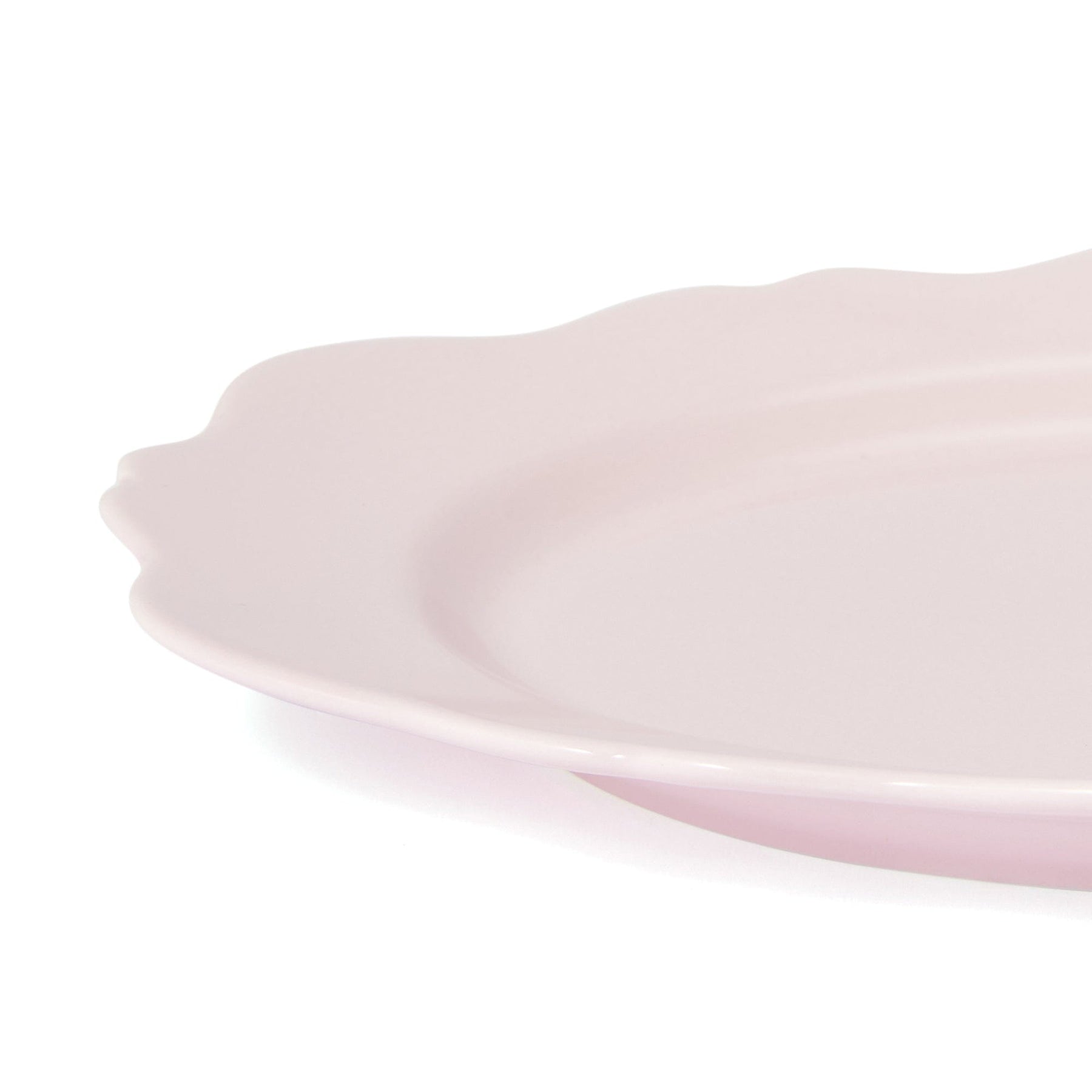 This elegant oval plate features a soft, scalloped shape that catches the eye.The gently wavy edges subtly enhance the food and add a gentle touch to your dining table.