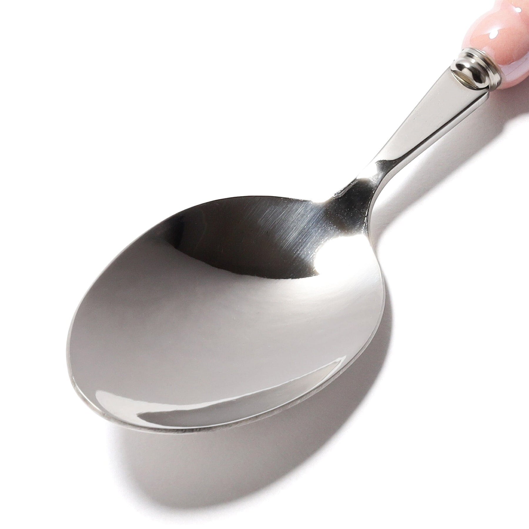 This dinner spoon features a unique handle design that adds a touch of elegance to your table setting.